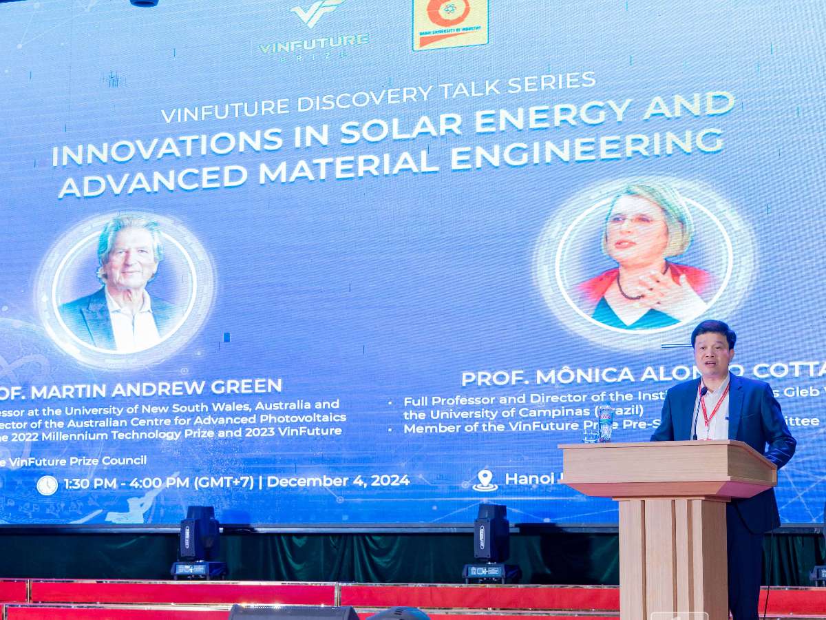 Ngày 04/12/2024, Quỹ VinFuture đã phối hợp với Trường Đại học Công nghiệp Hà Nội tổ chức Hội thảo khoa học “Những nghiên cứu đổi mới trong năng lượng mặt trời và kỹ thuật vật liệu tiên tiến”. Đây là sự kiện quan trọng nằm trong khuôn khổ Tuần lễ Khoa học Công nghệ VinFuture 2024.