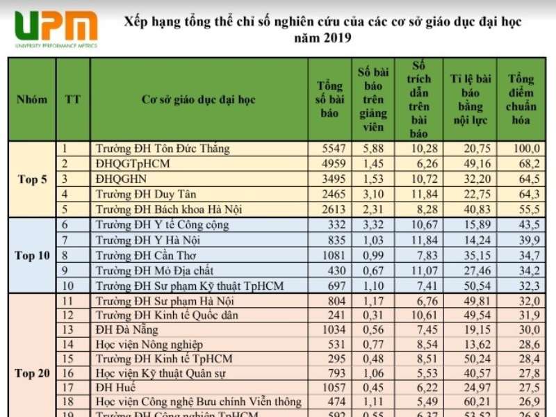 Một bảng xếp hạng các trường đại học Việt Nam do các nhà khoa học Việt Nam tự thực hiện vừa công bố các so sánh về các chỉ số nghiên cứu khoa học của hơn 30 cơ sở trong cả nước.