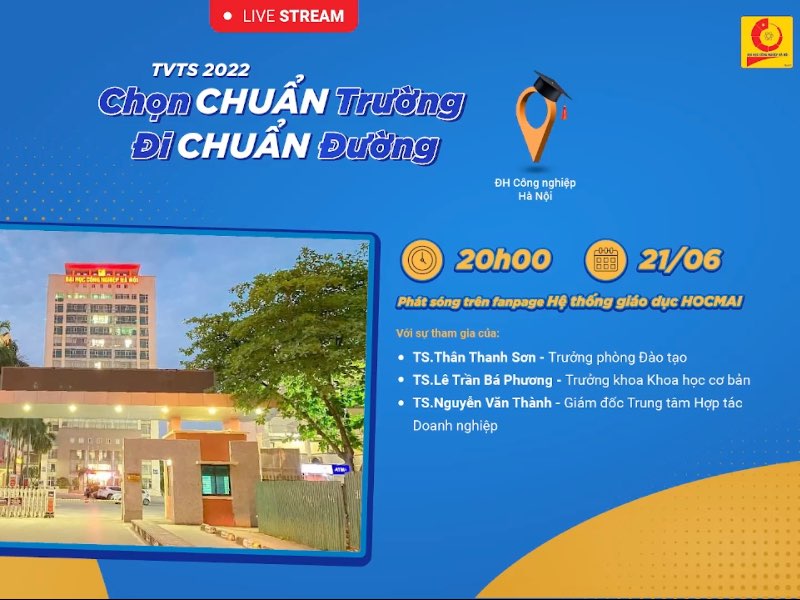 Vào khung giờ từ 19h45 -21h, Thứ Ba, ngày 23/4, Đại học Công nghiệp Hà Nội sẽ tổ chức buổi LIVE STREAM Tư vấn tuyển sinh năm 2024 - Những điều cần biết.