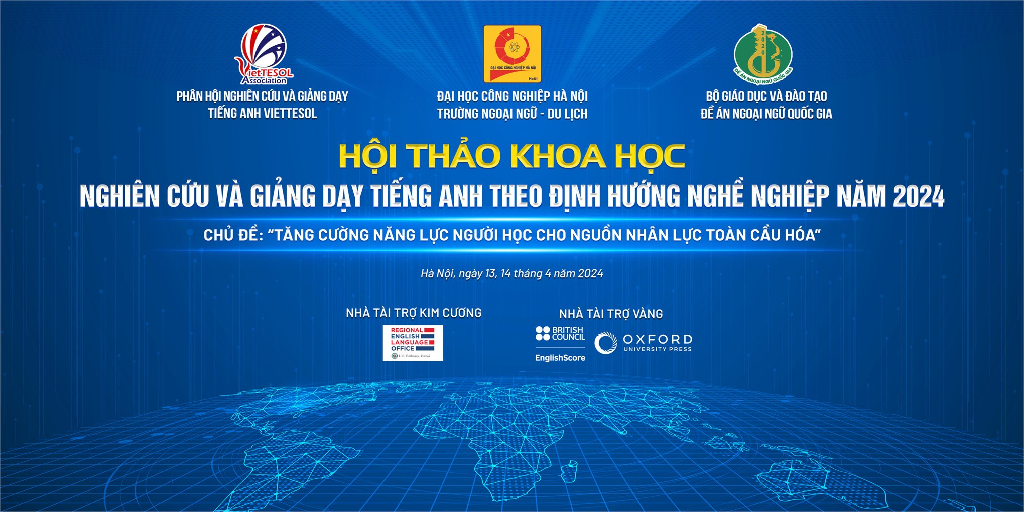 Đại học Công nghiệp Hà Nội phối hợp với Ban quản lý Đề án Ngoại ngữ Quốc gia, Bộ Giáo dục & Đào tạo, Phân hội nghiên cứu và giảng dạy tiếng Anh VietTESOL tổ chức Hội thảo khoa học nghiên cứu và giảng dạy tiếng Anh theo định hướng nghề nghiệp năm 2024 với chủ đề: “Tăng cường năng lực người học cho nguồn nhân lực toàn cầu hóa”.