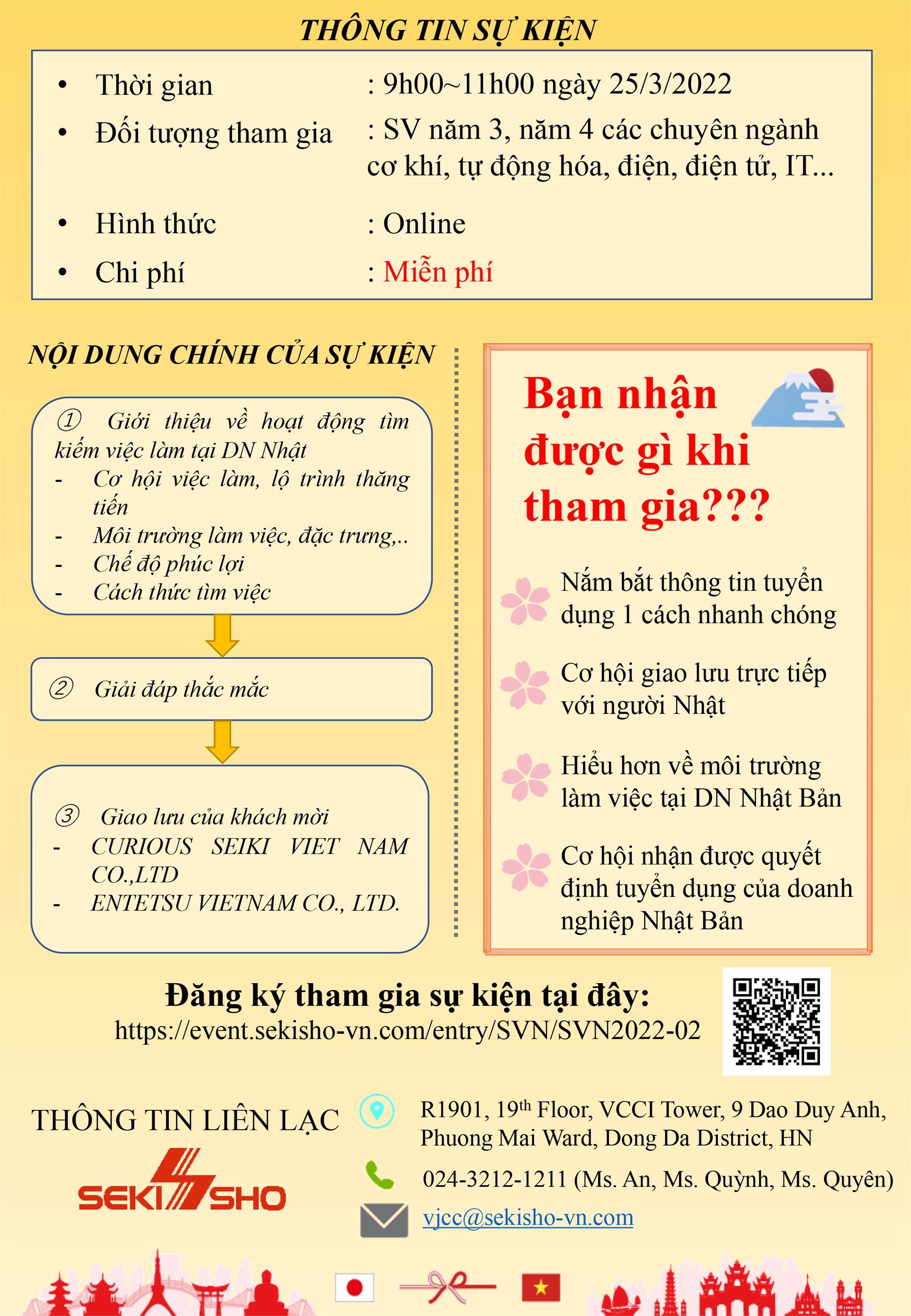+ SV và đăng ký tham gia theo đường link sau: https://event.sekisho-vn.com/entry/SVN/SVN2022-02