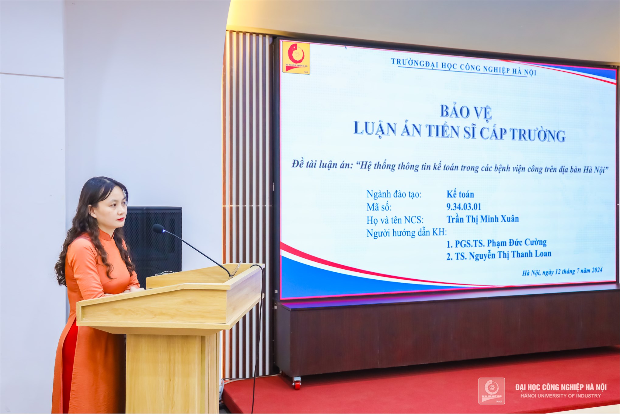 NCS Trần Thị Minh Xuân – Phó Trưởng phòng Tài chính - Kế toán Trường Đại học Y Hà Nội kiêm Kế toán trưởng, Trưởng phòng Tài chính – kế toán, Bệnh viện Đại học Y Hà Nội trình bày tóm tắt luận án