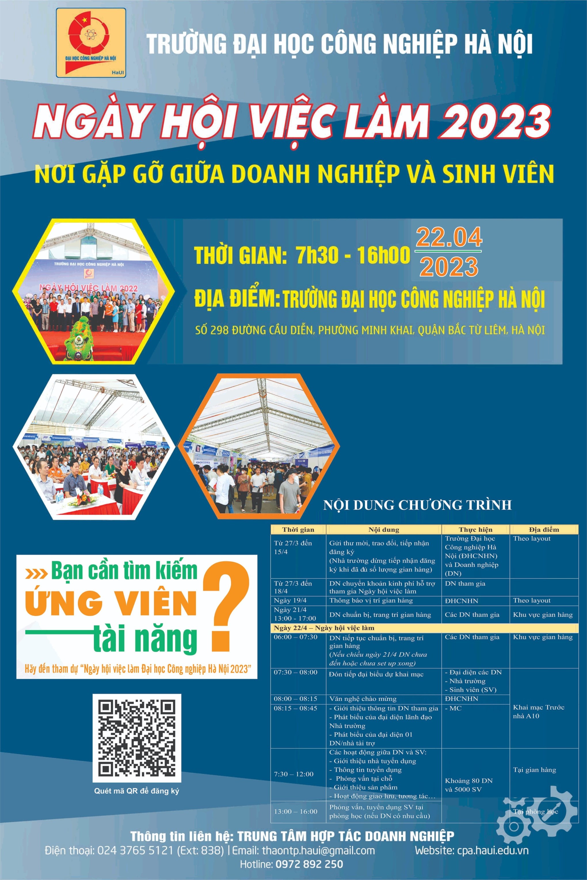 Nhằm tạo điều kiện cho sinh viên nhà trường tiếp cận thị trường lao động và tìm được việc làm phù hợp, đồng thời doanh nghiệp có cơ hội quảng bá hình ảnh và tìm được ứng viên tốt nhất, trường Đại học Công nghiệp Hà Nội tổ chức "Ngày hội việc làm năm 2023".