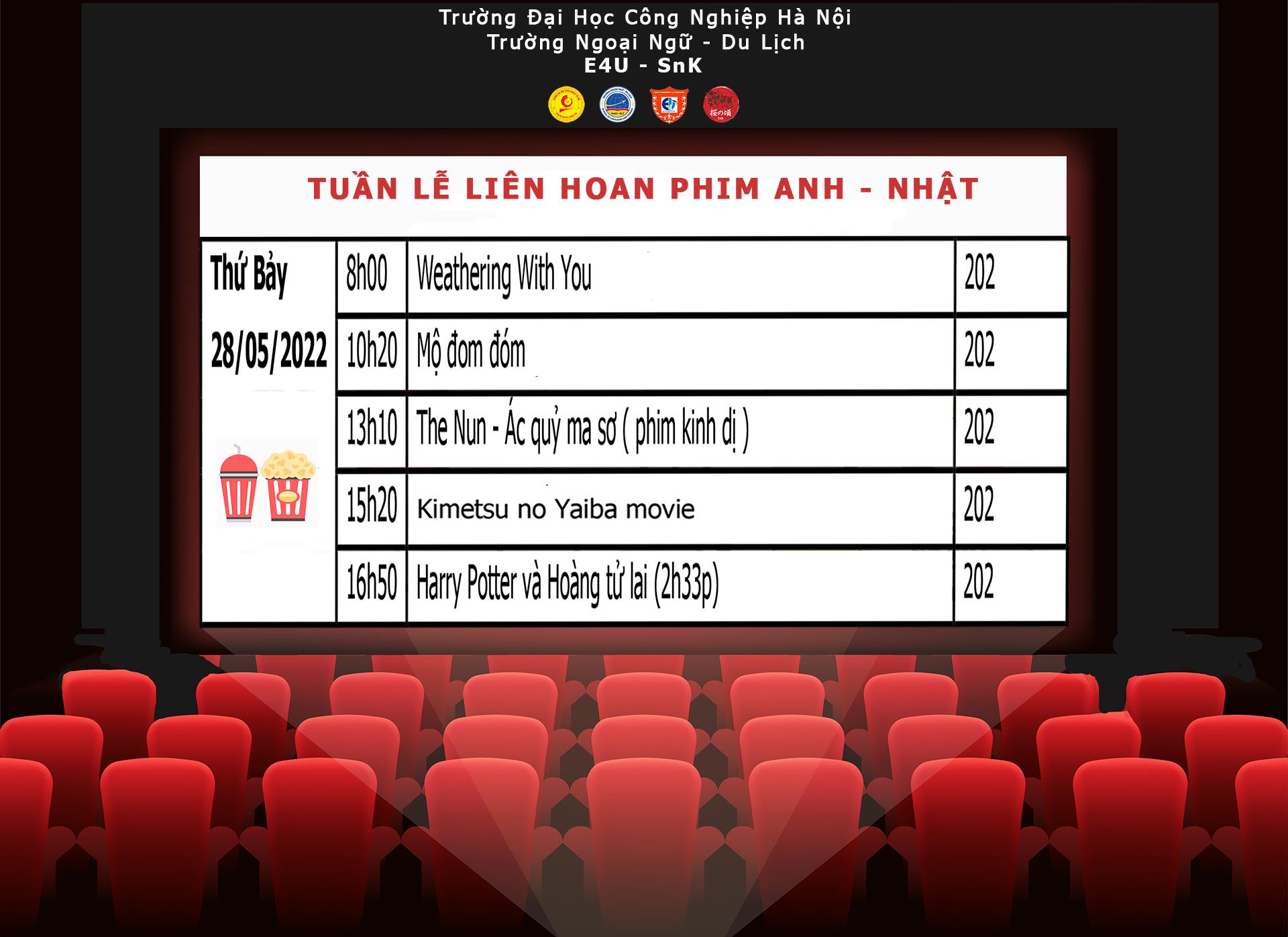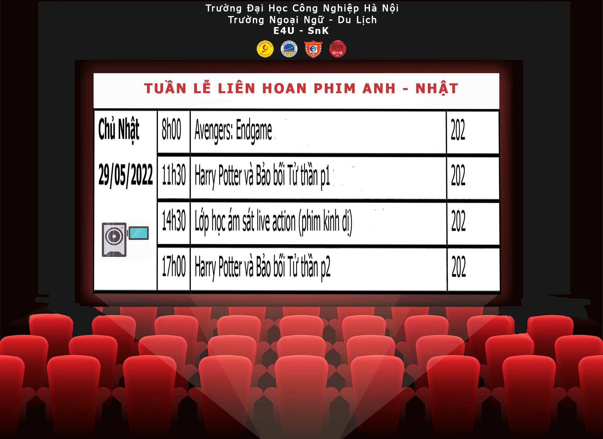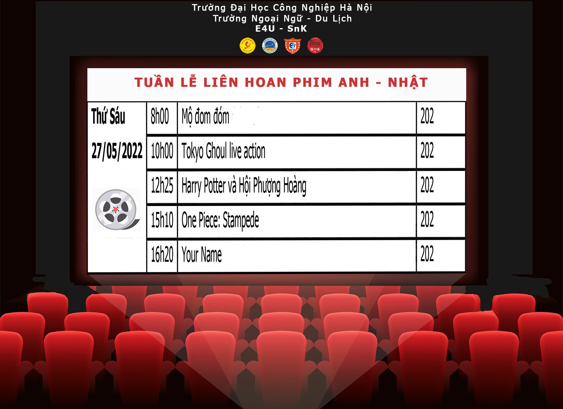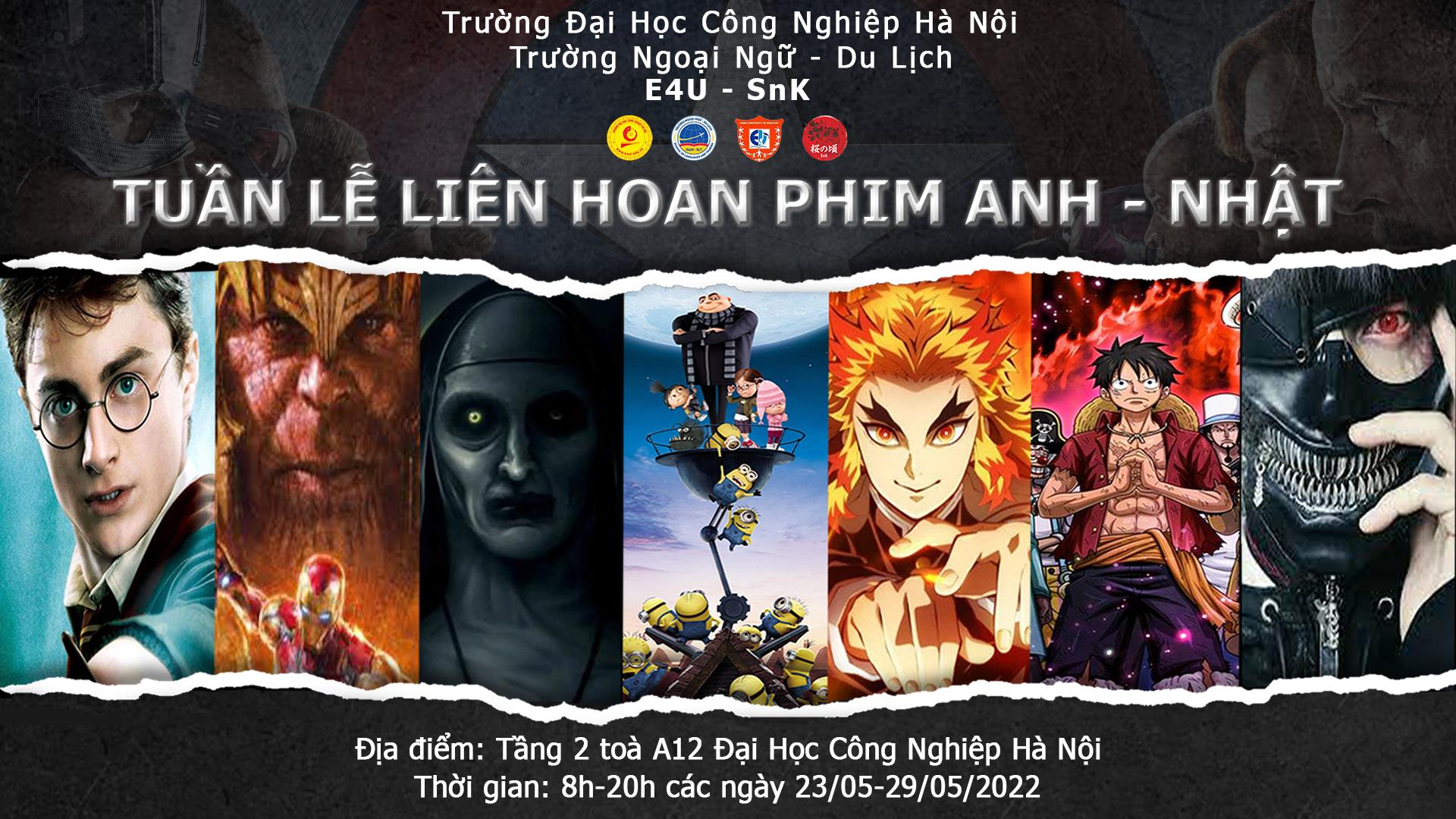 Sự kiện “Tuần lễ phim Anh - Nhật ” tại Trường Ngoại ngữ - Du lịch, Trường Đại học Công nghiệp Hà Nội lần đầu tiên được ra mắt dưới sự kết hợp của CLB tiếng Anh E4U và CLB tiếng Nhật Sakura no Koro.