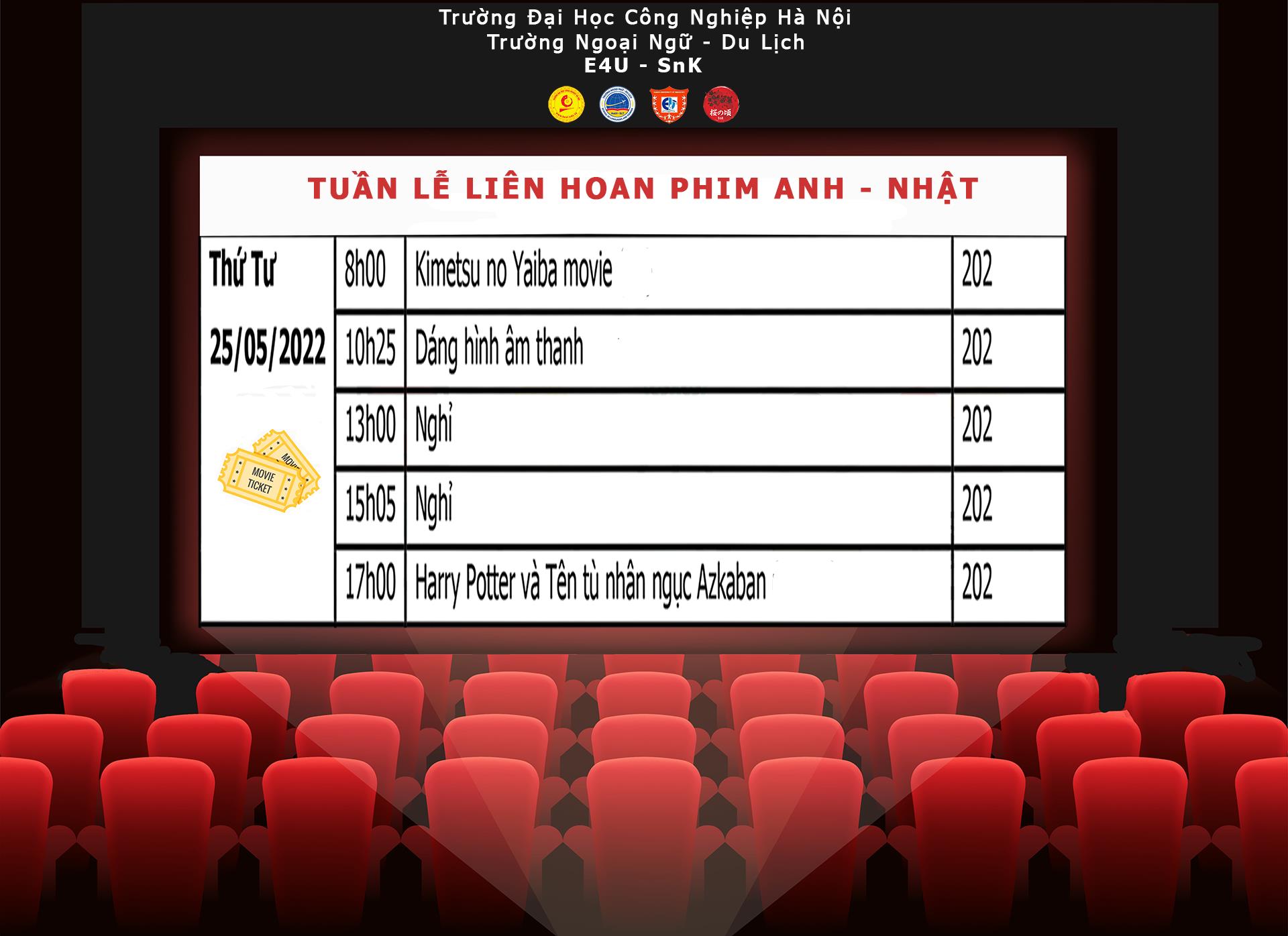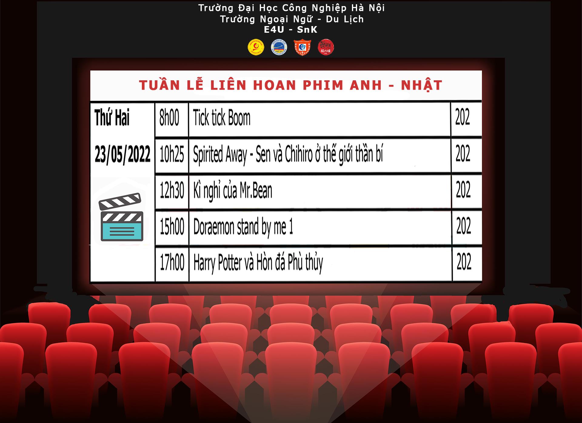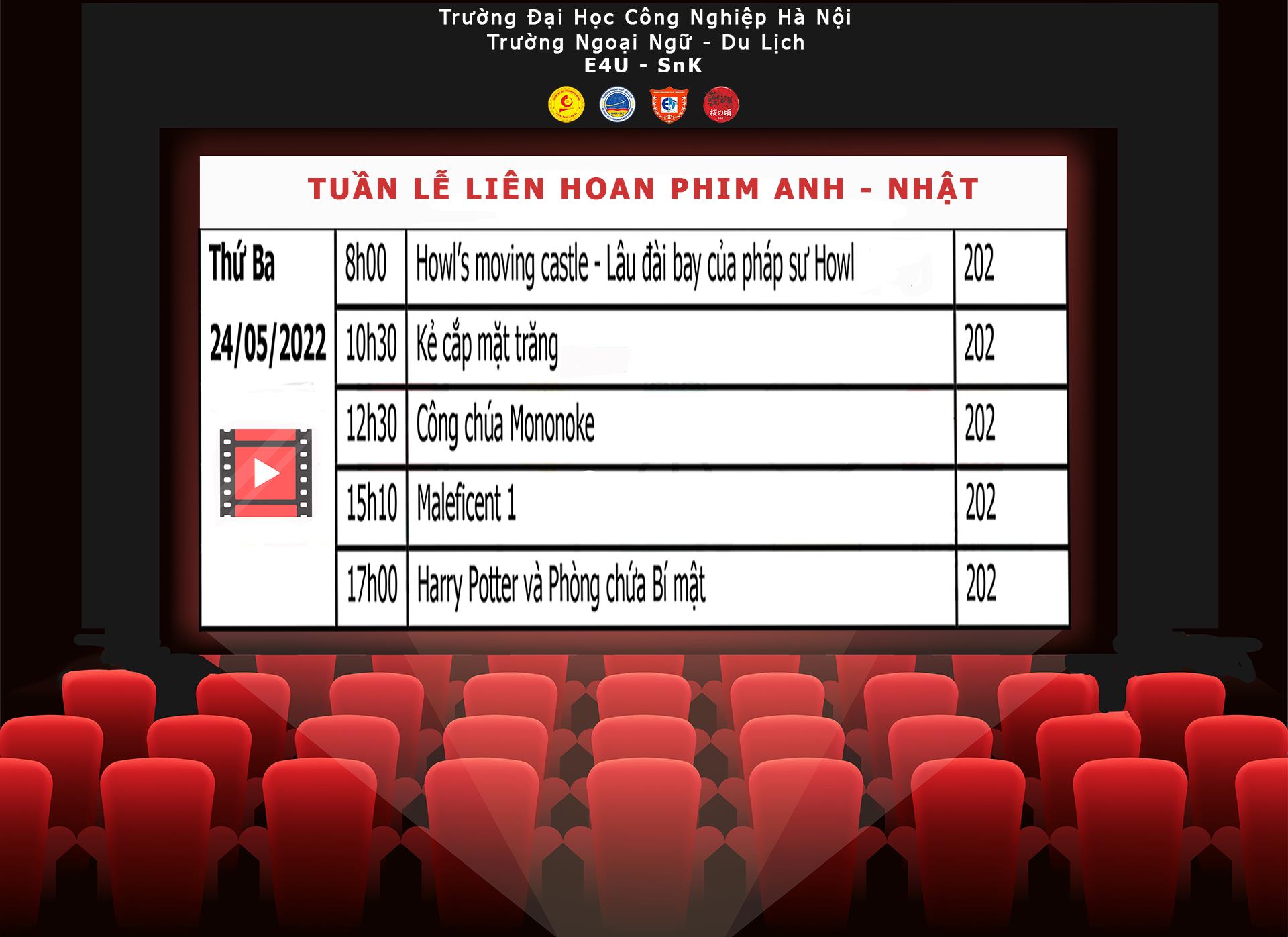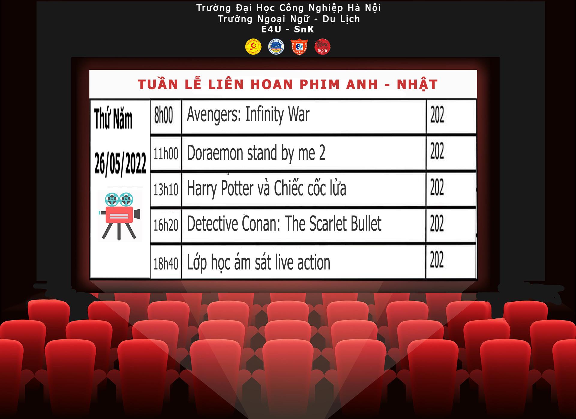 Sự kiện “Tuần lễ phim Anh - Nhật ” tại Trường Ngoại ngữ - Du lịch, Trường Đại học Công nghiệp Hà Nội lần đầu tiên được ra mắt dưới sự kết hợp của CLB tiếng Anh E4U và CLB tiếng Nhật Sakura no Koro.