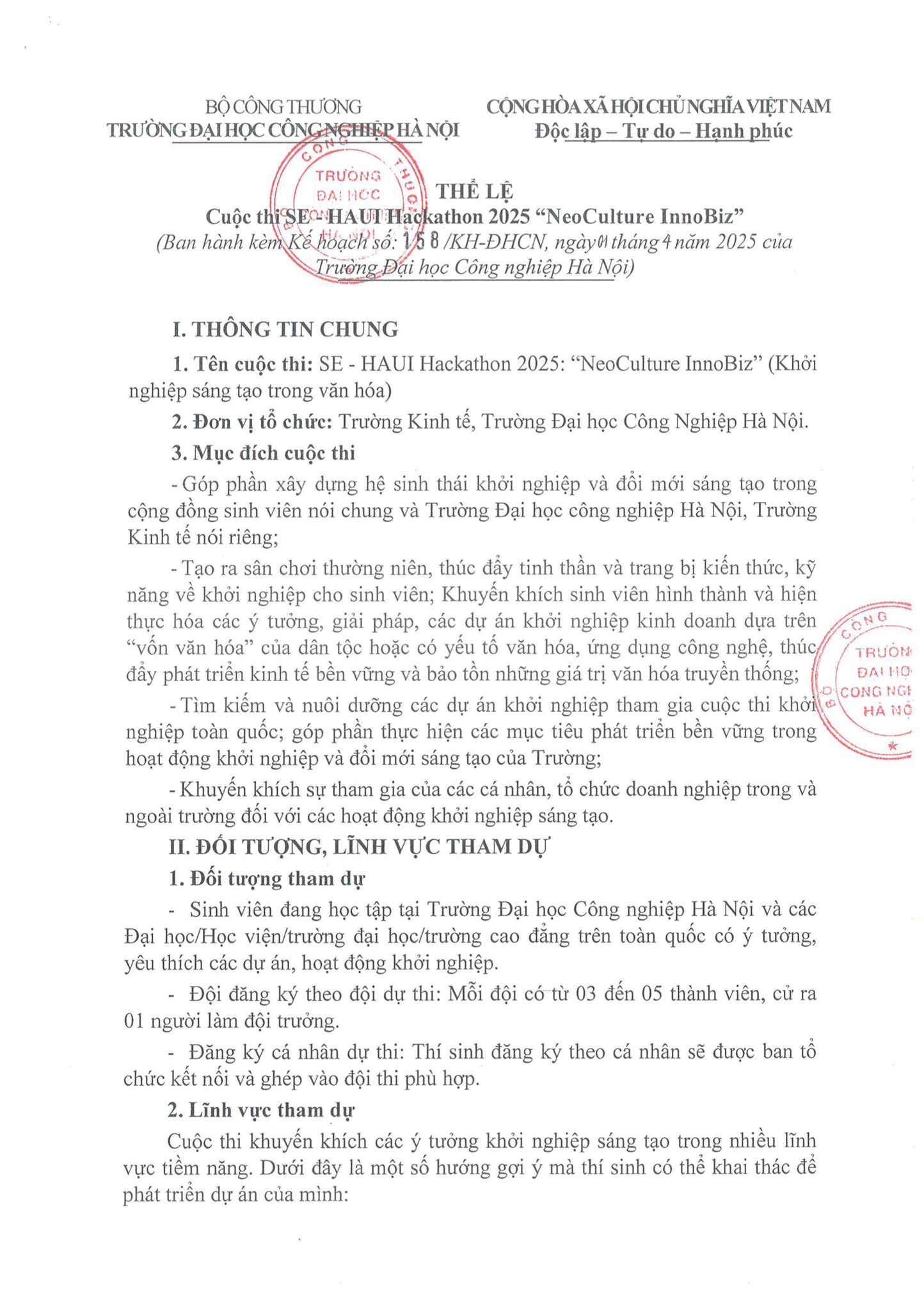Trường Đại học Công nghiệp Hà Nội thông báo kế hoạch tổ chức Cuộc thi SE - HaUI Hackathon 2025 "NeoCulture InnoBiz".