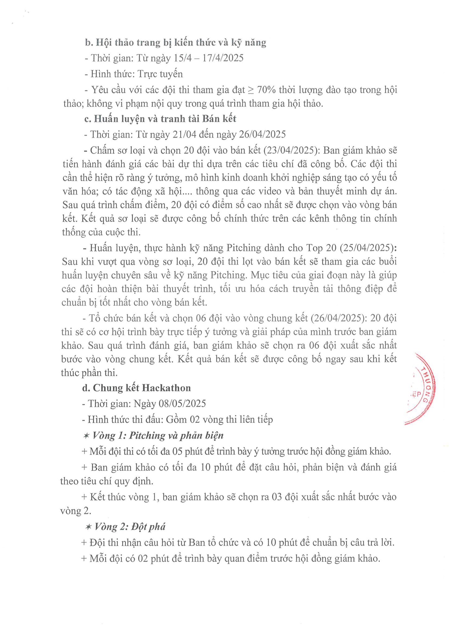 - Giai đoạn 4: Chung kết Hackathon (08/05/2025)