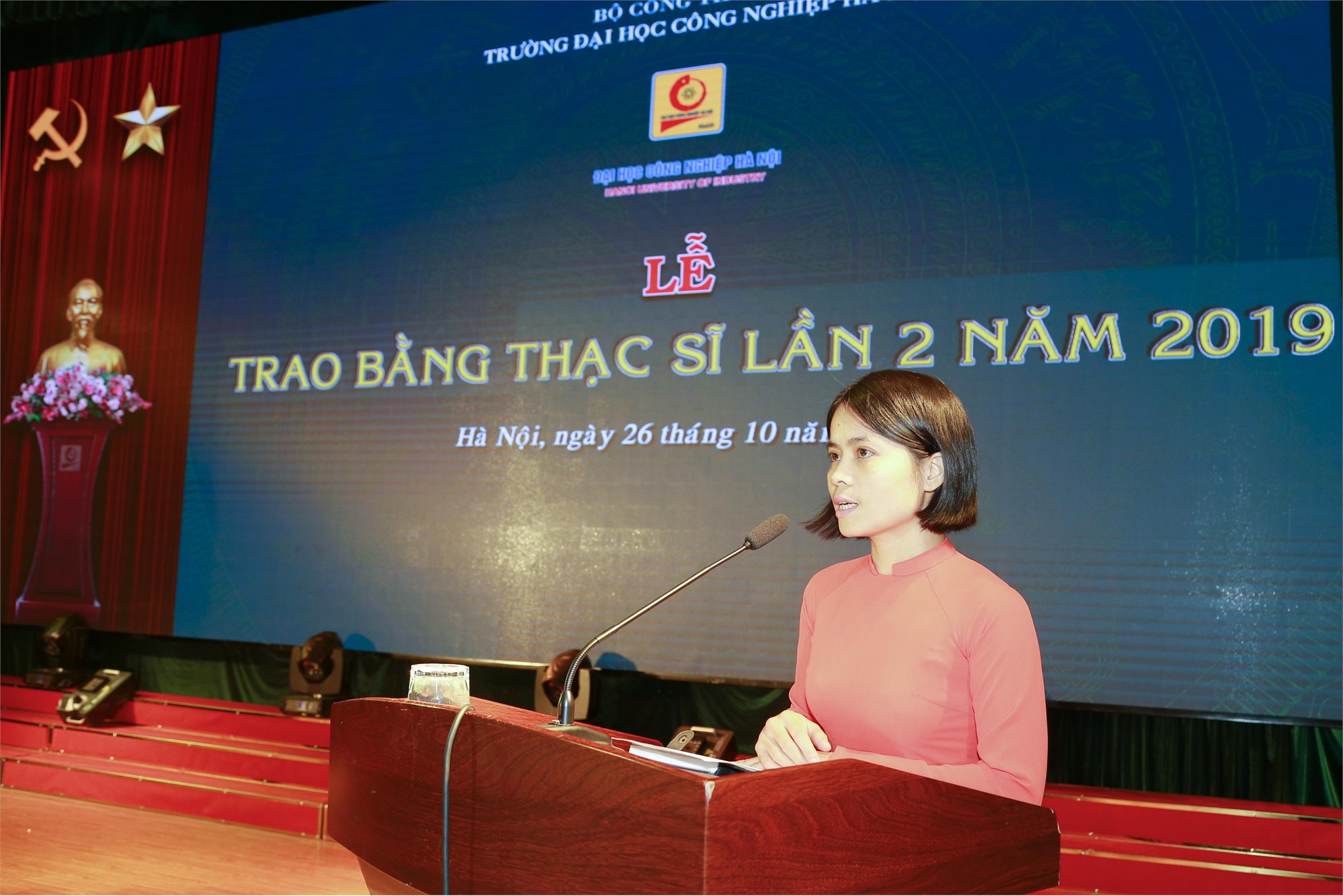 “Với tấm bằng mà các tân Thạc sĩ nhận được ngày hôm nay, đó không chỉ là niềm vinh dự, tự hào mà đó còn là kết quả xứng đáng cho những tháng ngày miệt mài học tập, nghiên cứu của các học viên tại trường Đại học Công nghiệp Hà Nội (ĐHCNHN). Chúc 127 tân Thạc sĩ nhận bằng ngày hôm nay, sẽ tự tin bước tiếp trên con đường học tập, nghiên cứu của mình, vận dụng kiến thức đã học để nâng cao năng lực cả về lý luận và kỹ năng, đóng góp nhiều hơn cho cộng đồng và xã hội” –PGS.TS. Phạm Văn Bổng – Phó Hiệu trưởng Nhà trường phát biểu tại Lễ trao bằng Thạc sĩ đợt 2 năm 2019 được tổ chức ngày 26/10 tại trường ĐHCNHN