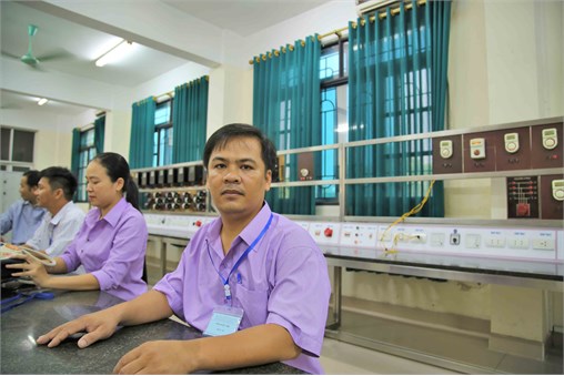Thí sinh Nguyễn Thanh Vân – Cao đẳng Công thương Miền Trung chuẩn bị bước vào phần thi lý thuyết nghề Điện công nghiệp