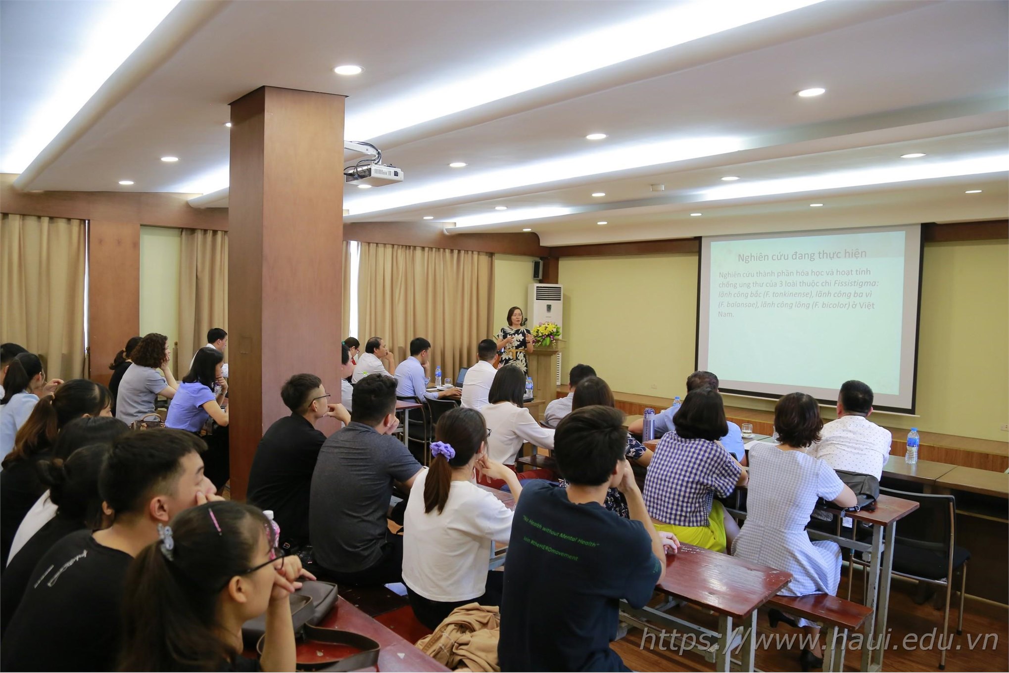 PGS.TS. Phạm Thị Thắm trình bày báo cáo " Nghiên cứu tìm kiếm một số hợp chất có hoạt tính sinh học" tại Hội nghị khoa học Khoa Công nghệ Hóa