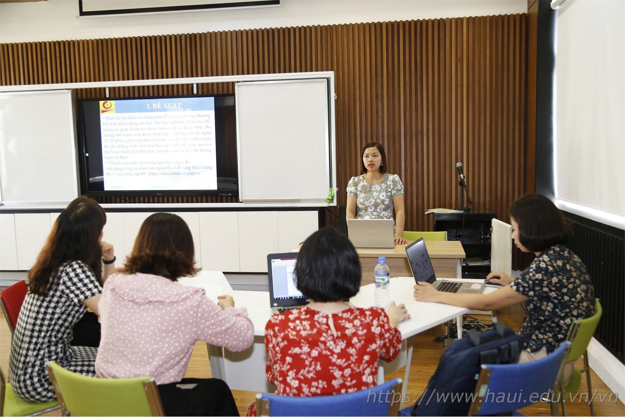 Ths. Phạm Thị Trang trình bày báo cáo " Một số phần mềm tham khảo áp dụng trong dạy Tiếng Trung trực tuyến" tại Hội đồng Bộ môn Tiếng Trung, Tiếng Nhật và Tiếng Hàn - Khoa ngoại ngữ