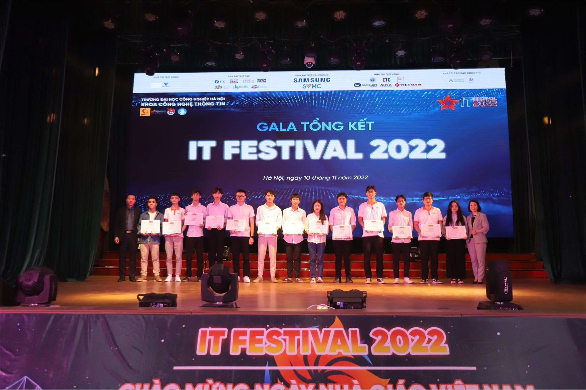 Nằm trong chuỗi các hoạt động "Chào mừng kỷ niệm ngày Nhà giáo Việt Nam 20/11”, hướng tới kỷ niệm 23 năm thành lập khoa Công nghệ Thông tin, Đại học Công nghiệp Hà Nội tổ chức đêm “Gala tổng kết IT Festival 2022” vào tối 10/11/2022. Sự kiện thu hút sự tham gia đông đảo của các thầy cô giáo cùng sinh viên, cựu sinh viên khoa CNTT.