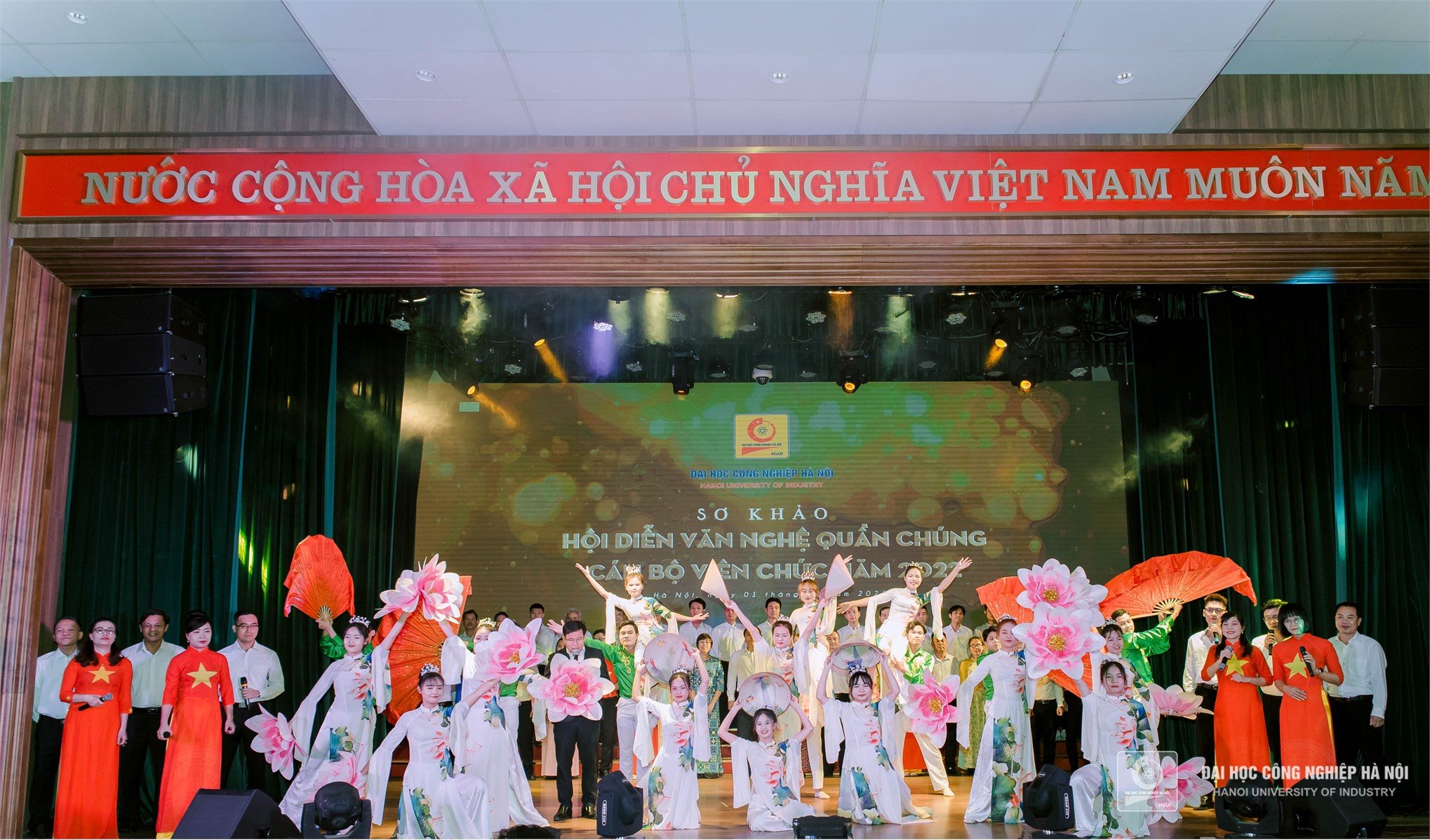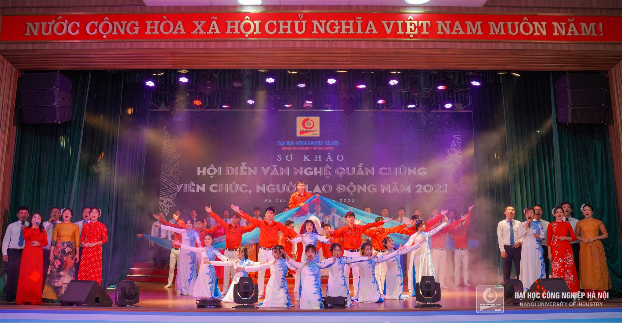 Đầu tư hoành tráng, công phu và đa sắc màu các thể loại nghệ thuật, đó là những gì mà 3 đêm sơ khảo hội diễn nghệ thuật quần chúng năm 2022 của Đại học Công nghiệp Hà Nội đã để lại trong lòng Ban tổ chức, khán giả yêu nghệ thuật và viên chức, người lao động, học viên, sinh viên nhà trường.