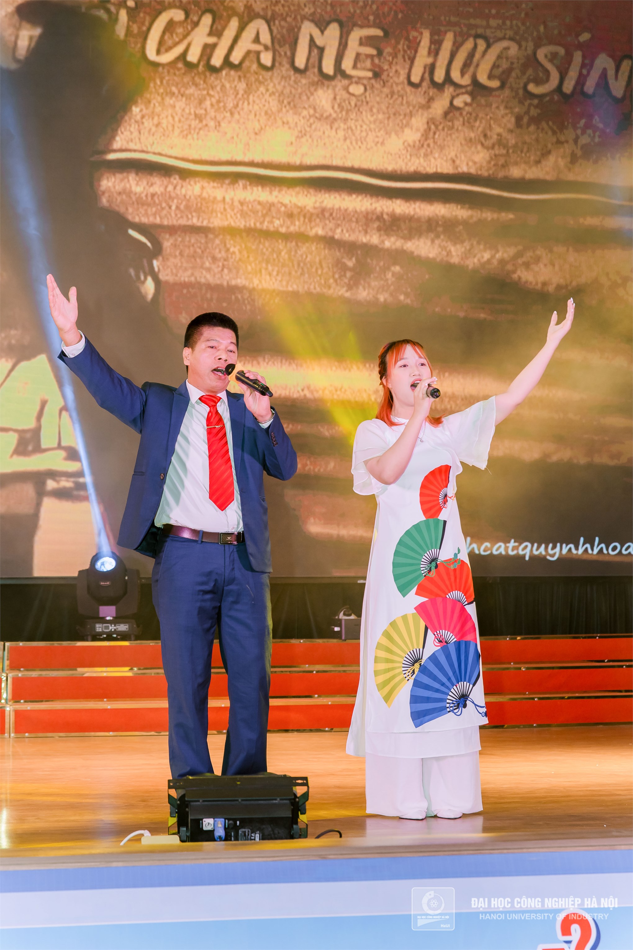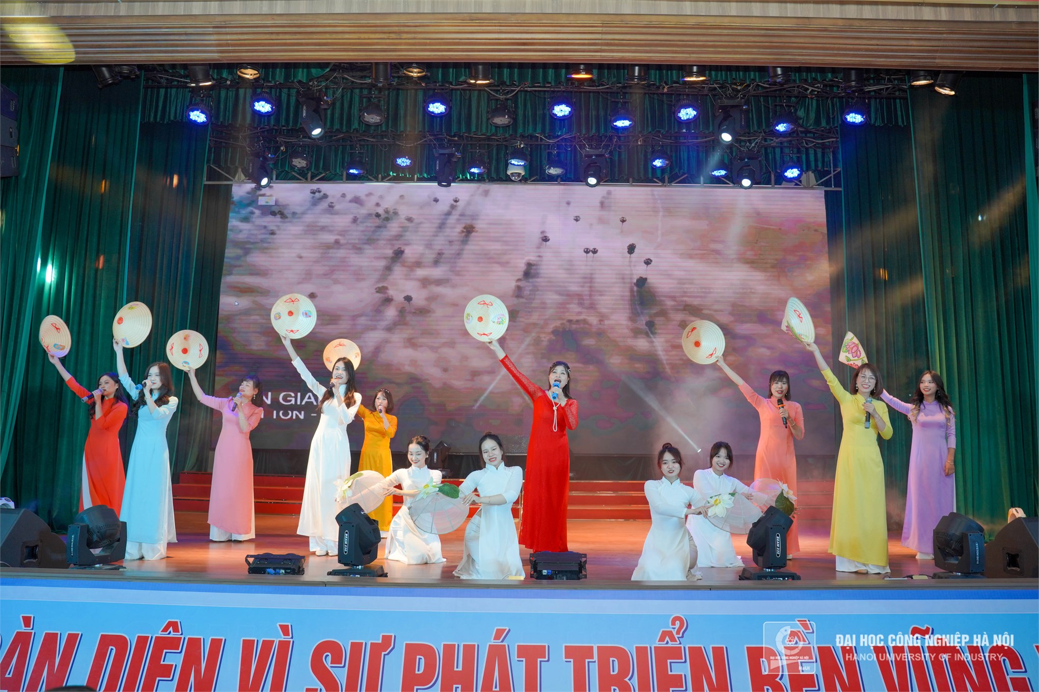 Khoa Quản lý Kinh doanh, P. Tài chính kế toán và TT Khảo thí với tiết mục Múa Nguyệt cầm, Hợp xướng Thăng Long Hà Nội đất rồng bay và những tiết mục tốp ca, song ca ấn tượng.