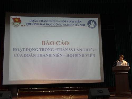 Thay mặt Đoàn thanh niên, Hội sinh viên Nhà trường, đồng chí Nguyễn Việt Anh - Phó Bí thư Đoàn trường đã báo cáo những hoạt động và kết quả đã đạt được trong một tuần thực hiện. Kết quả cho thấy, cảnh quan sư phạm được sửa sang sạch đẹp hơn, ý thức chấp hành nội quy của sinh viên Nhà trường được cải thiện, nhiều sinh viên đã nắm rõ hơn về nội dung và ý nghĩa của hoạt động 5S.