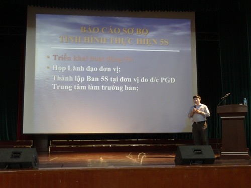 Trong tuần 5S lần thứ 7, TT Thư viện là một trong những đơn vị thuộc khối văn phòng đã triển khai sâu rộng và bài bản hoạt động 5S. Thay mặt cho TT Thư viện, đồng chí Nguyễn Ngọc Anh - Giám đốc TT Thư viện đã chia sẻ những việc làm thực tế tại đơn vị. Đây cũng là một cải tiến mới của Tuần 5S lần thứ 7. Theo đó, việc các đơn vị thực hiện tốt 5S chia sẻ kinh nghiệm sẽ tiếp tục được duy trì, nhằm mục đích nhân rộng những gương sáng điển hình đi đầu thực hiện 5S của Nhà trường.