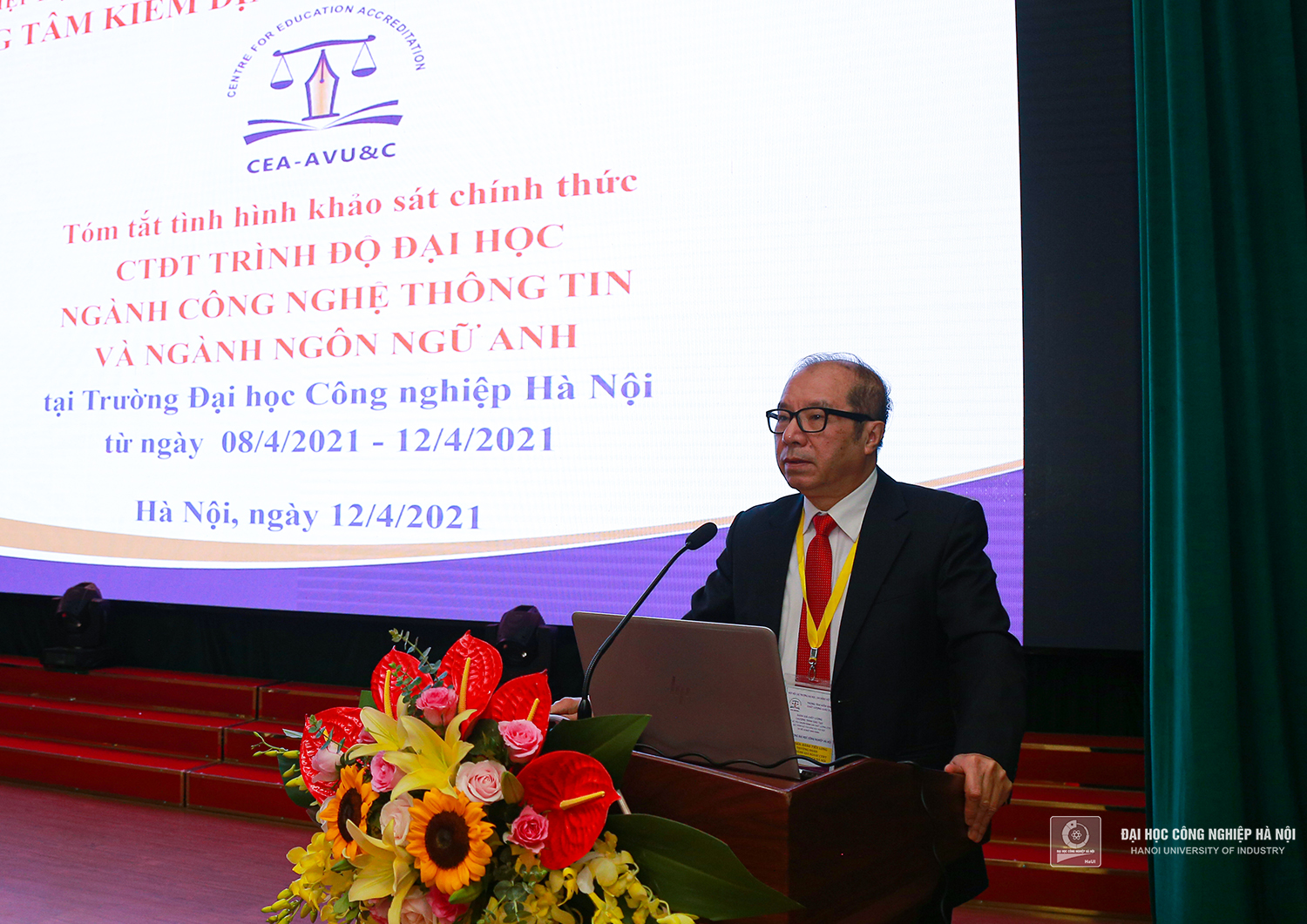 PGS.TS. Trần Đức Quý khẳng định sẽ tiếp thu tất cả những nhận xét, góp ý, khuyến nghị của đoàn chuyên gia đánh giá để cải tiến chất lượng đối với 02 ngành Ngôn ngữ Anh và Công nghệ thông tin với mục tiêu đảm bảo, nâng cao chất lượng đào tạo; tiếp tục khẳng định giá trị, thương hiệu Đại học Công nghiệp Hà Nội với người học và xã hội.