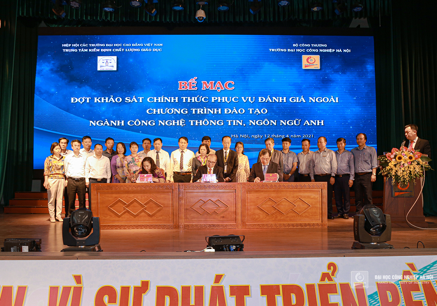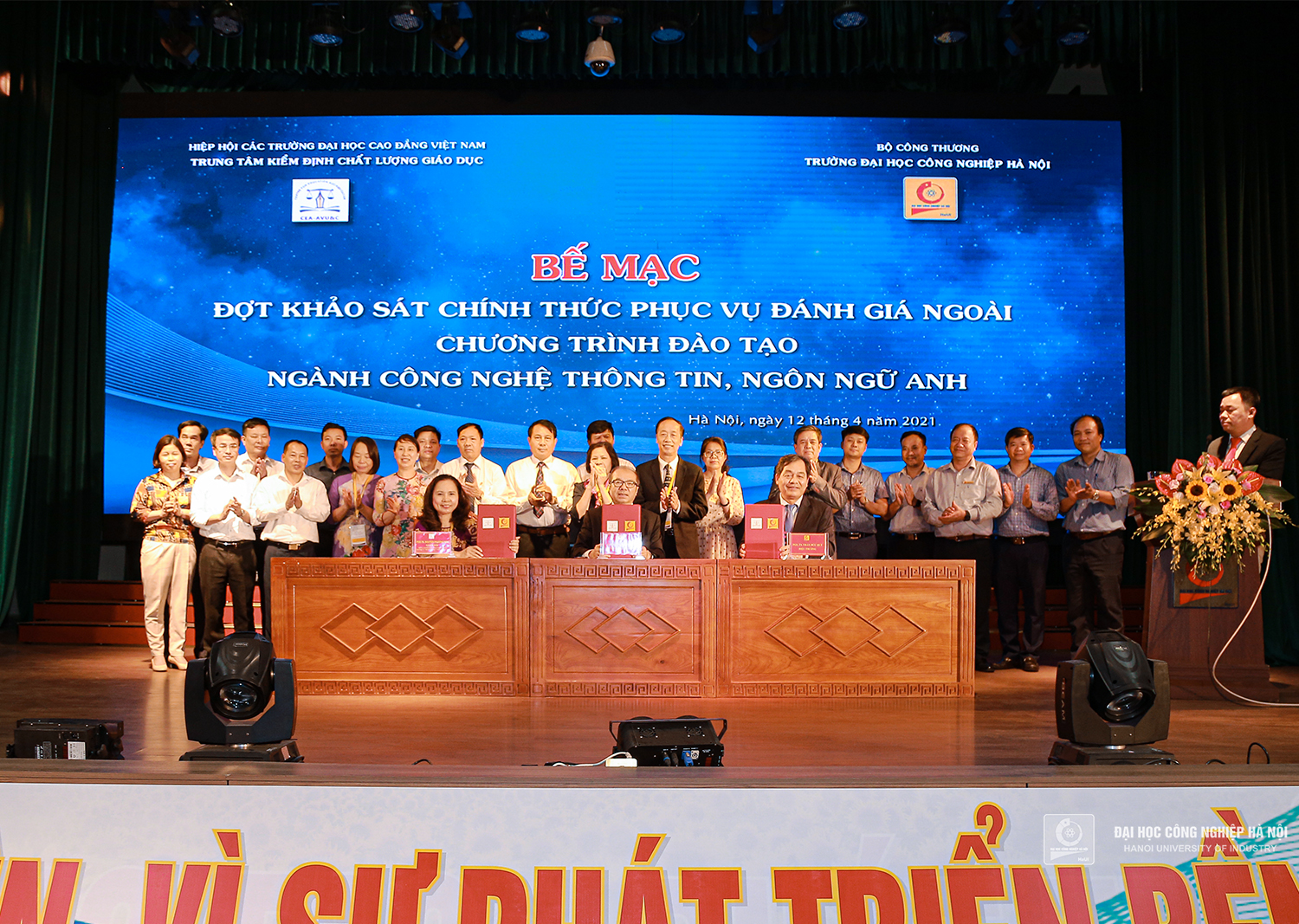 Chiều ngày 12/4/2021, Trung tâm Kiểm định chất lượng giáo dục (KĐCLGD) thuộc Hiệp hội các trường Đại học, Cao đẳng Việt Nam phối hợp với Đại học Công nghiệp Hà Nội tổ chức bế mạc đợt khảo sát chính thức đánh giá ngoài chương trình đào tạo (CTĐT) 02 ngành Công nghệ thông tin và Ngôn ngữ Anh theo tiêu chuẩn của Bộ Giáo dục và Đào tạo.