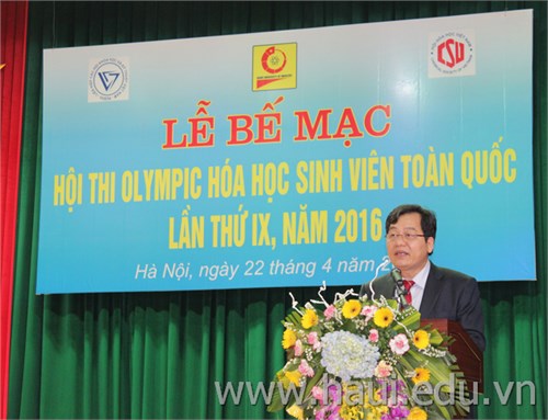 Đại diện cho Ban giám hiệu Nhà trường PGS.TS. Trần Đức Quý - Hiệu trưởng phát biểu tại buổi lễ bế mạc cho biết Olympic Hóa học năm nay thể hiện được chiều sâu của nội dung giảng dạy, hướng đến các hoạt động chuyên môn, nghiệp vụ và sự hợp tác trong nghiên cứu khoa học.