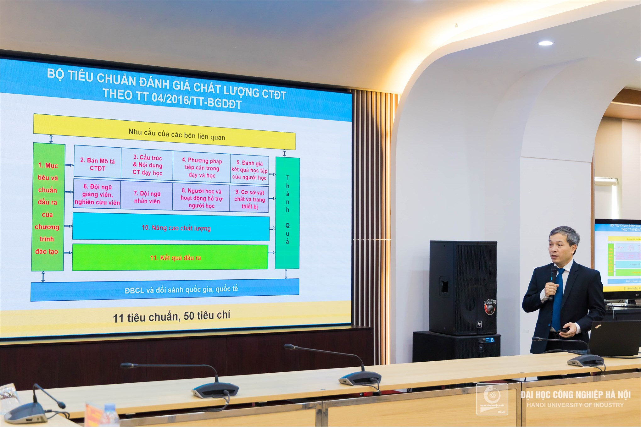 TS. Nguyễn Văn Thiện - Phó Hiệu trưởng Trường Đại học Công nghiệp Hà Nội nhấn mạnh: Đánh giá chất lượng chương trình đào tạo là nhiệm vụ trọng tâm trong mục tiêu đổi mới và phát triển Trường Đại học Công nghiệp Hà Nội; là cam kết của nhà trường với người học, với xã hội về chất lượng đào tạo. Đợt đánh giá 8 chương trình đào tạo lần này rất quan trọng, giúp nhà trường tiến dần đến mục tiêu hoàn thành kiểm định đánh giá 100% các chương trình đào tạo đại học, thạc sĩ theo tiêu chuẩn trong nước và nước ngoài.