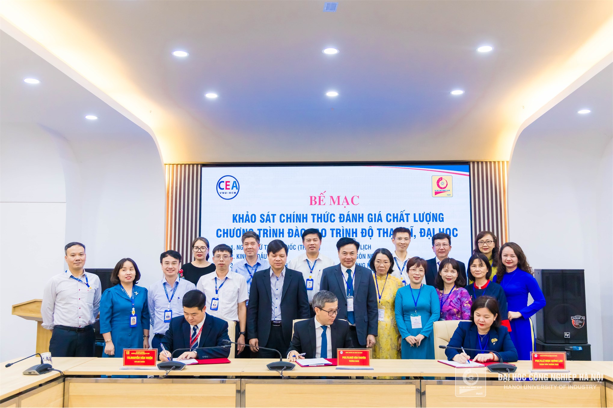 Kết thúc phiên bế mạc, đại diện Trường Đại học Công nghiệp Hà Nội và Trung tâm Kiểm định chất lượng giáo dục, Đại học Quốc gia TP. Hồ Chí Minh ký biên bản hoàn thành đợt khảo sát chính thức đánh giá ngoài 01 CTĐT trình độ Thạc sĩ và 07 CTĐT trình độ đại học.