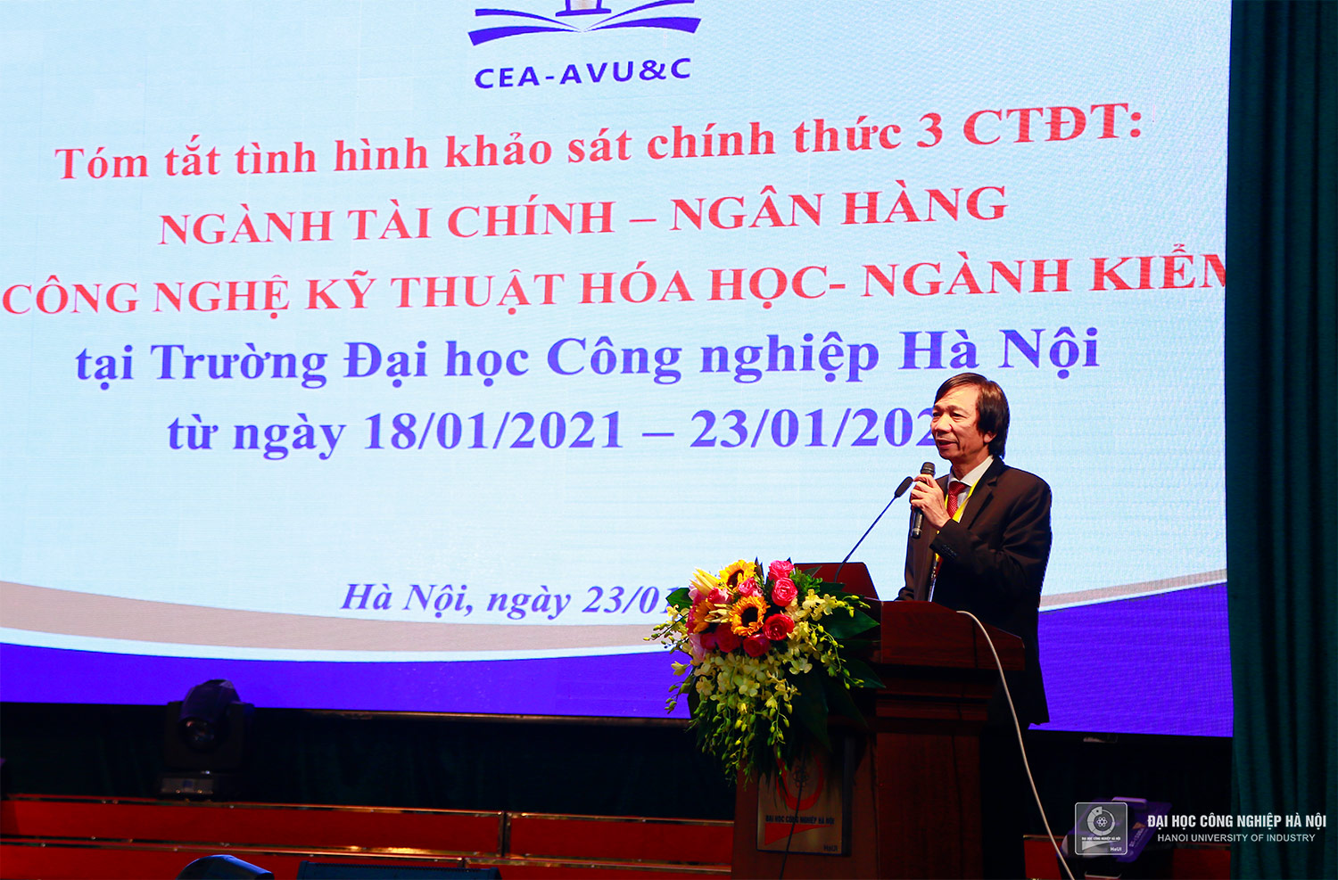 Chiều ngày 23/01/2021, sau 6 ngày thực hiện kế hoạch khảo sát đánh giá chính thức, Trung tâm Kiểm định chất lượng giáo dục (KĐCLGD) thuộc Hiệp hội các trường đại học, cao đẳng Việt Nam và Đại học Công nghiệp Hà Nội tổ chức bế mạc đợt khảo sát chính thức đánh giá ngoài chương trình đào tạo (CTĐT) 03 ngành: Tài chính - Ngân hàng, Kiểm toán và Công nghệ kỹ thuật Hóa học theo tiêu chuẩn của Bộ Giáo dục và Đào tạo.