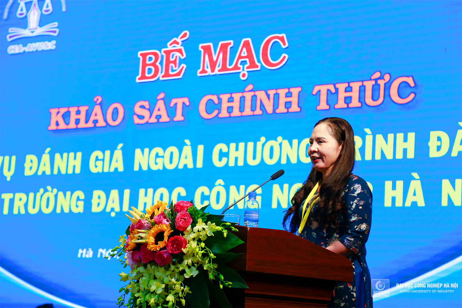 PGS.TS. Nguyễn Phương Nga - Giám đốc Trung tâm KĐCLGD, Cố vấn giám sát đoàn ĐGN chúc mừng nhà trường và đoàn đánh giá đã hoàn thành các nội dung trong đợt đánh giá ngoài. PGS.TS. Nguyễn Phương Nga cam kết Trung tâm KĐCLGD sẽ tiếp tục phối hợp cùng nhà trường để giúp trường kiểm định, đánh giá các chương trình đào tạo với mục tiêu nâng cao chất lượng giáo dục.