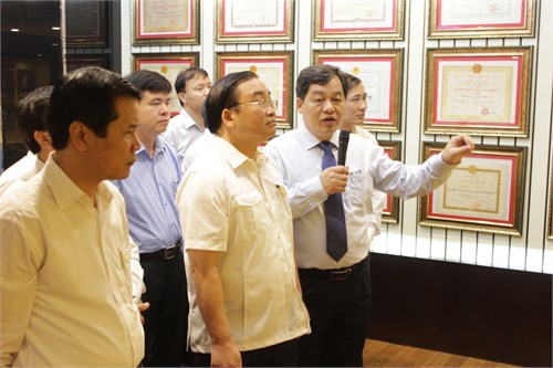 Đồng chí Hoàng Trung Hải thăm phòng Truyền thống của Nhà trường.
