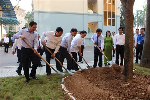 Trồng cây lưu niệm trước nhà A10.