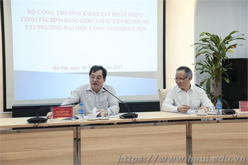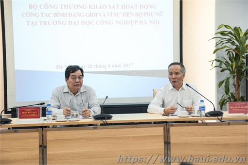 Sáng ngày 28/6/2017, Đoàn khảo sát của Bộ Công Thương do đồng chí Trần Quốc Khánh, Thứ trưởng Bộ Công Thương - Trưởng Ban Vì sự tiến bộ phụ nữ Bộ Công Thương làm trưởng đoàn đã làm việc với Lãnh đạo, Ban Vì sự tiến bộ phụ nữ Trường Đại học Công nghiệp Hà Nội về tình hình thực hiện Nghị quyết 11-NQ/TW của Bộ Chính trị về công tác bình đẳng giới và vì sự tiến bộ phụ nữ trong thời kỳ công nghiệp hóa, hiện đại hóa đất nước. Đoàn khảo sát còn có sự tham dự của đại diện các đơn vị: Vụ Tổ chức Cán bộ, Vụ Tài chính, Vụ Kế hoạch, Vụ Pháp chế, Văn phòng Ban Cán sự Đảng, Công đoàn Bộ và đại diện Văn phòng Ủy ban quốc gia vì sự tiến bộ của phụ nữ Việt Nam.