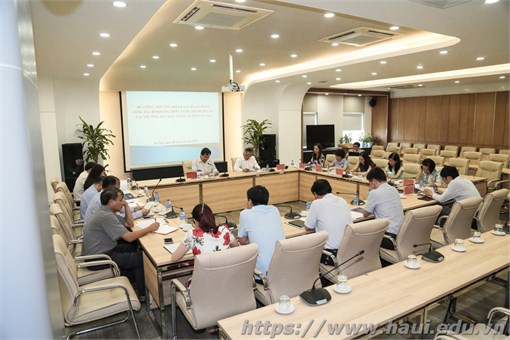 Toàn cảnh buổi làm việc của đoàn khảo sát hoạt động công tác bình đẳng giới và vì sự tiến bộ phụ nữ tại Trường Đại học Công nghiệp Hà Nội