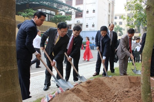 Bộ trưởng trồng cây lưu niệm tại khuôn viên Nhà trường.