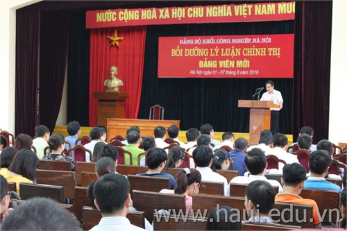 Căn cứ nghị quyết Ban chấp hành Đảng bộ trường Đại học Công nghiệp Hà Nội nhiệm kỳ 2015-2020, thực hiện kế hoạch công tác tuyên giáo và chương trình công tác xây dựng Đảng năm 2016, đồng thời được sự nhất trí của Thường trực Đảng uỷ khối Công nghiệp Hà Nội, trong các ngày từ 01-07/8/2016 Đảng ủy trường ĐHCNHN phối hợp với Ban Tuyên giáo Đảng ủy khối tổ chức lớp Bồi dưỡng lý luận chính trị đảng viên mới năm 2016.