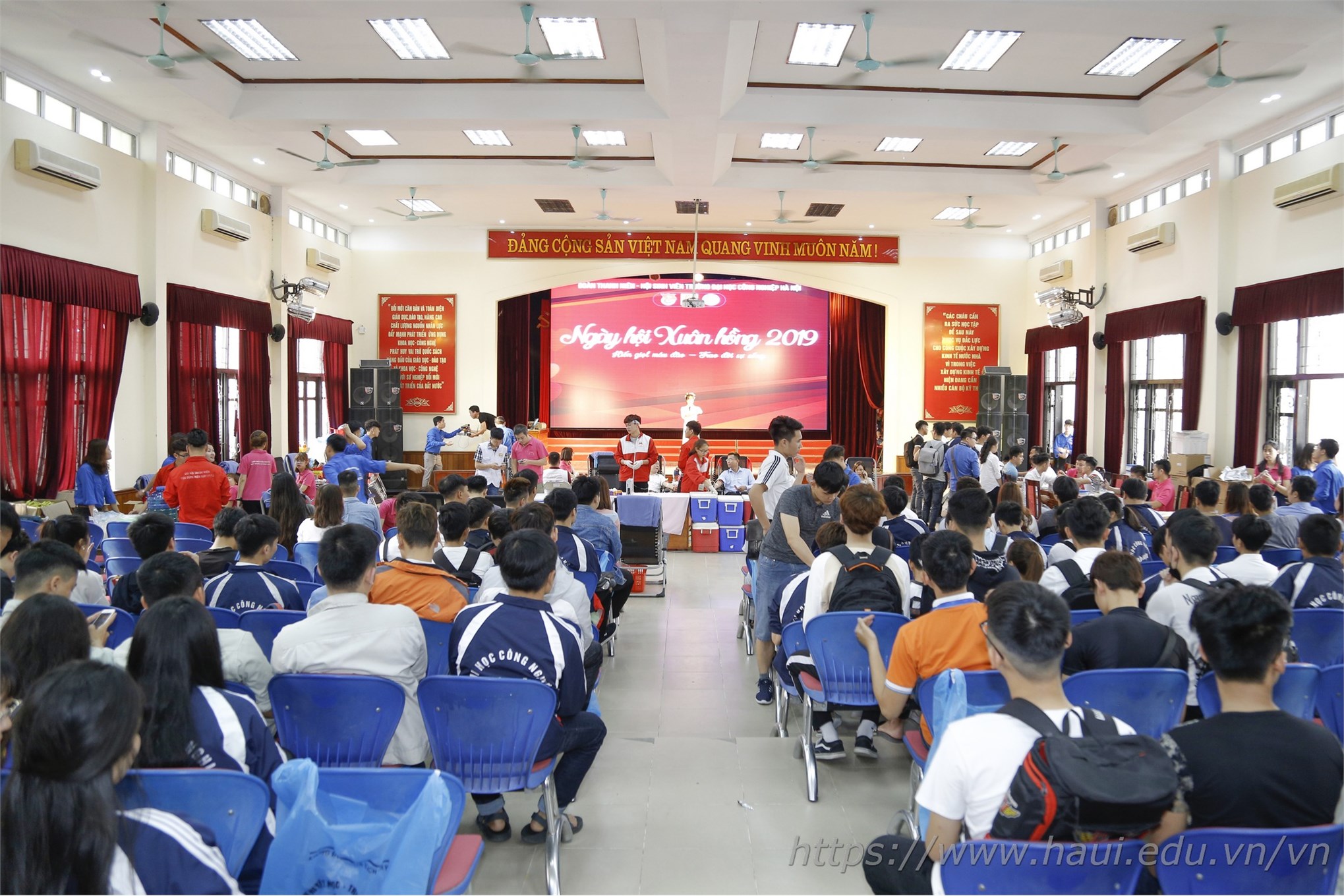 Ngày hội Xuân hồng năm 2019 được tổ chức với các hoạt động đồng hành ý nghĩa như: Chương trình nghệ thuật “Tự hào màu áo xanh”, triển lãm, giới thiệu sách, trao đổi học liệu và phong trào “Sinh viên 5 tốt”… Với thông điệp “Hiến giọt máu đào - Trao đời sự sống”, hiến máu nhân đạo - một hoạt động đậm tính nhân văn, cứu giúp người bệnh trong cơn nguy kịch, thể hiện truyền thống "thương người như thể thương thân" của dân tộc đã luôn nhận được sự quan tâm, ủng hộ và tích cực tham gia hưởng ứng của cán bộ giảng viên và sinh viên nhà trường.