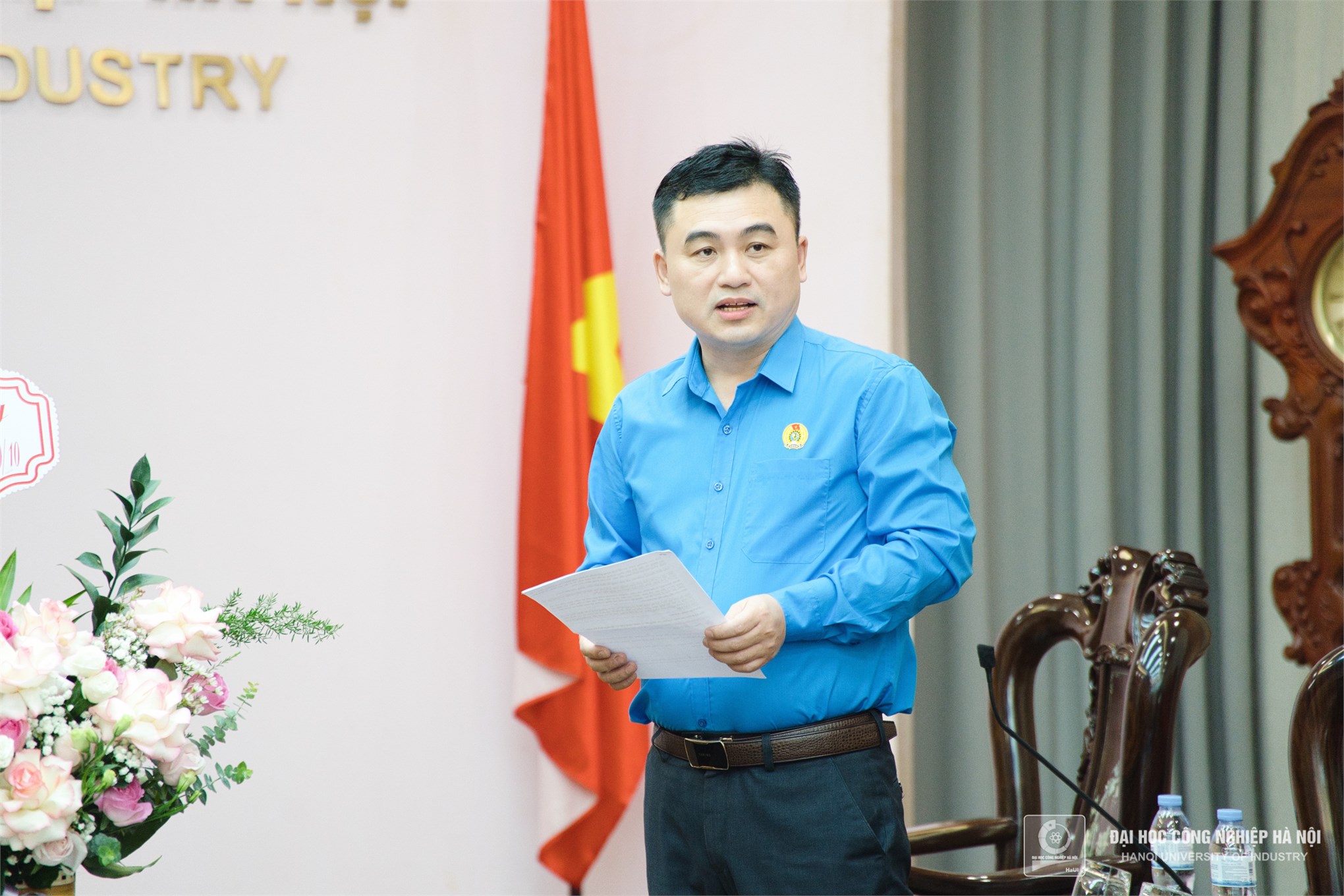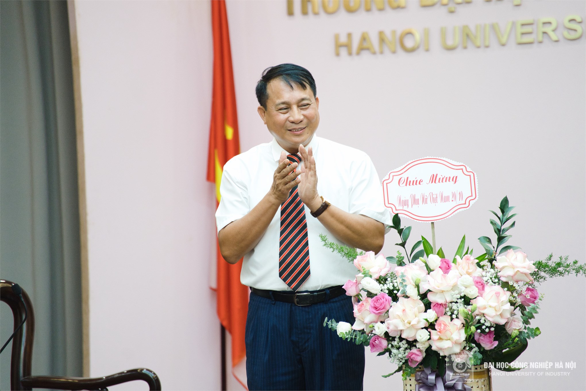 Phát biểu chúc mừng, thay mặt Lãnh đạo nhà trường, đồng chí Lê Hồng Quân - Bí thư Đảng ủy, Chủ tịch Hội đồng trường thân ái gửi tới nữ viên chức, người lao động, nữ sinh nhà trường lời chúc mừng tốt đẹp nhất.