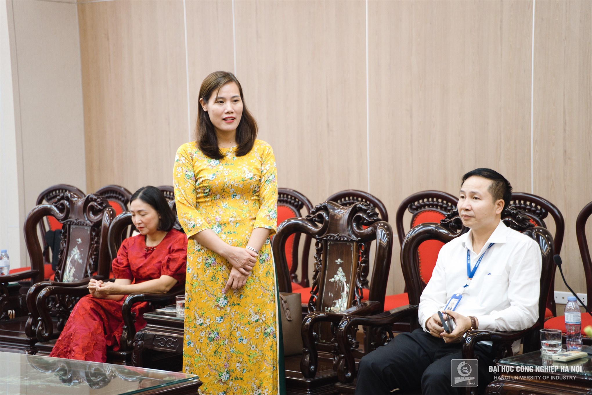 Đồng chí Nguyễn Thị Nguyệt Dung - Trưởng Ban nữ công thay mặt nữ viên chức, người lao động và nữ sinh toàn trường, chân thành cảm ơn sự quan tâm của lãnh đạo nhà trường, đồng thời bày tỏ quyết tâm của chị em toàn trường, nỗ lực, hoàn thành thắng lợi mọi nhiệm vụ được giao, viết tiếp bảng vàng thành tích 126 năm xây dựng và phát triển của Đại học Công nghiệp Hà Nội.