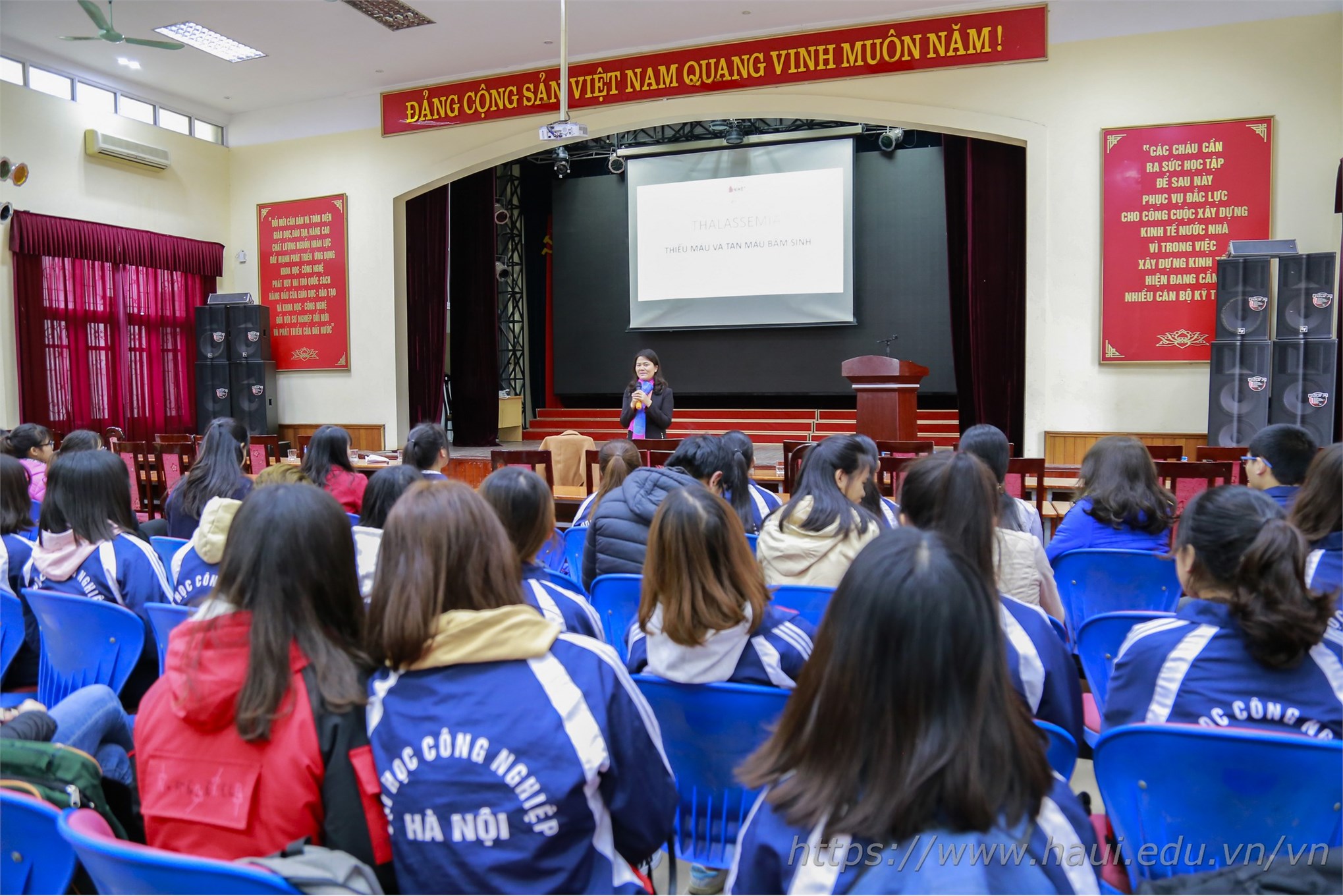 Chuỗi hoạt động chào mừng Ngày truyền thống HSSV và Hội sinh viên Việt Nam tiếp nối với buổi Tọa đàm do TS.Bác sĩ Nguyễn Thị Thu Hà - Giám đốc Trung tâm Thalassemia, Viện Huyết học - Truyền máu Trung ương trao đổi với các bạn sinh viên về bệnh thiếu máu và tan máu bẩm sinh (Thalasemia).