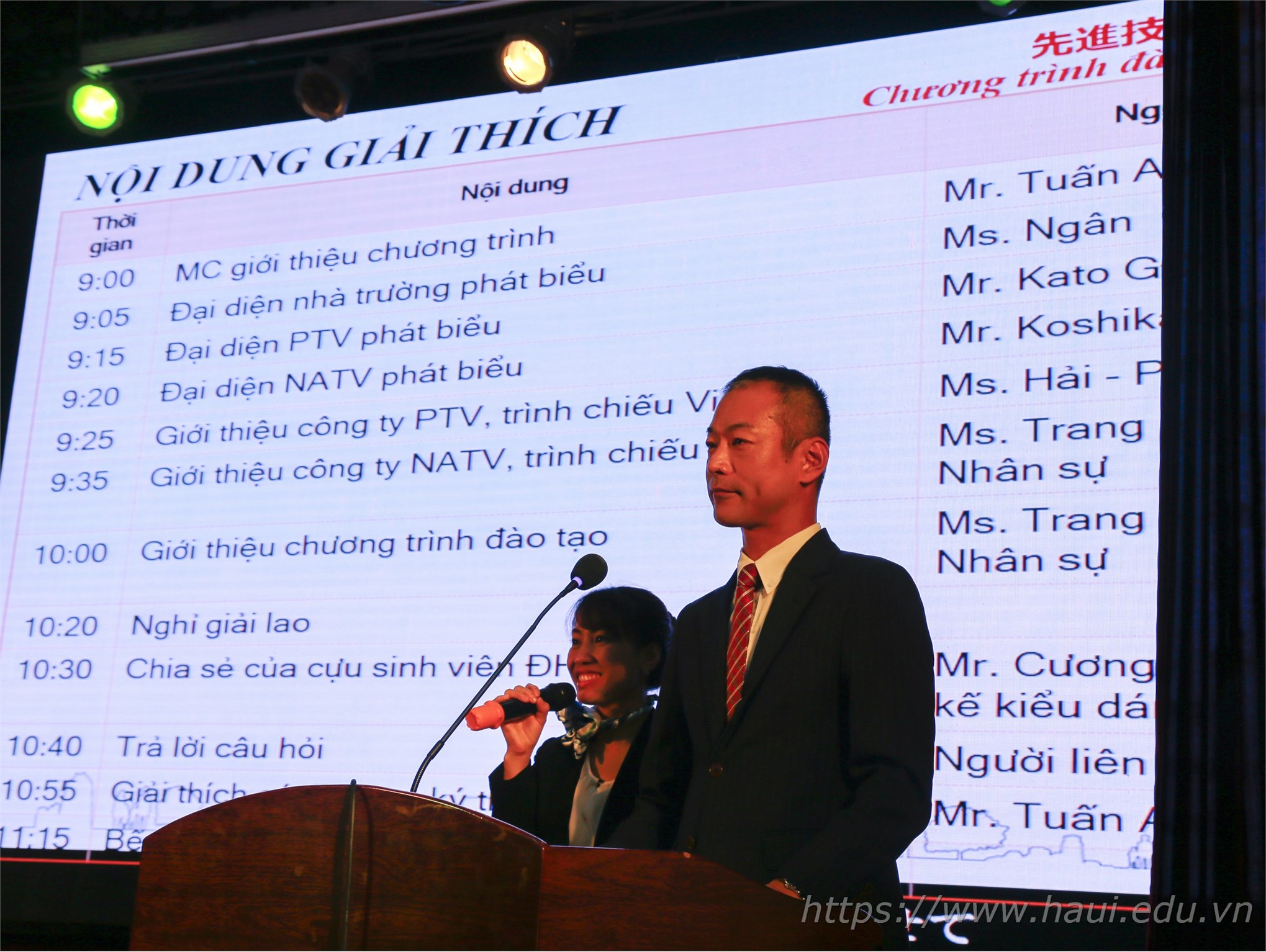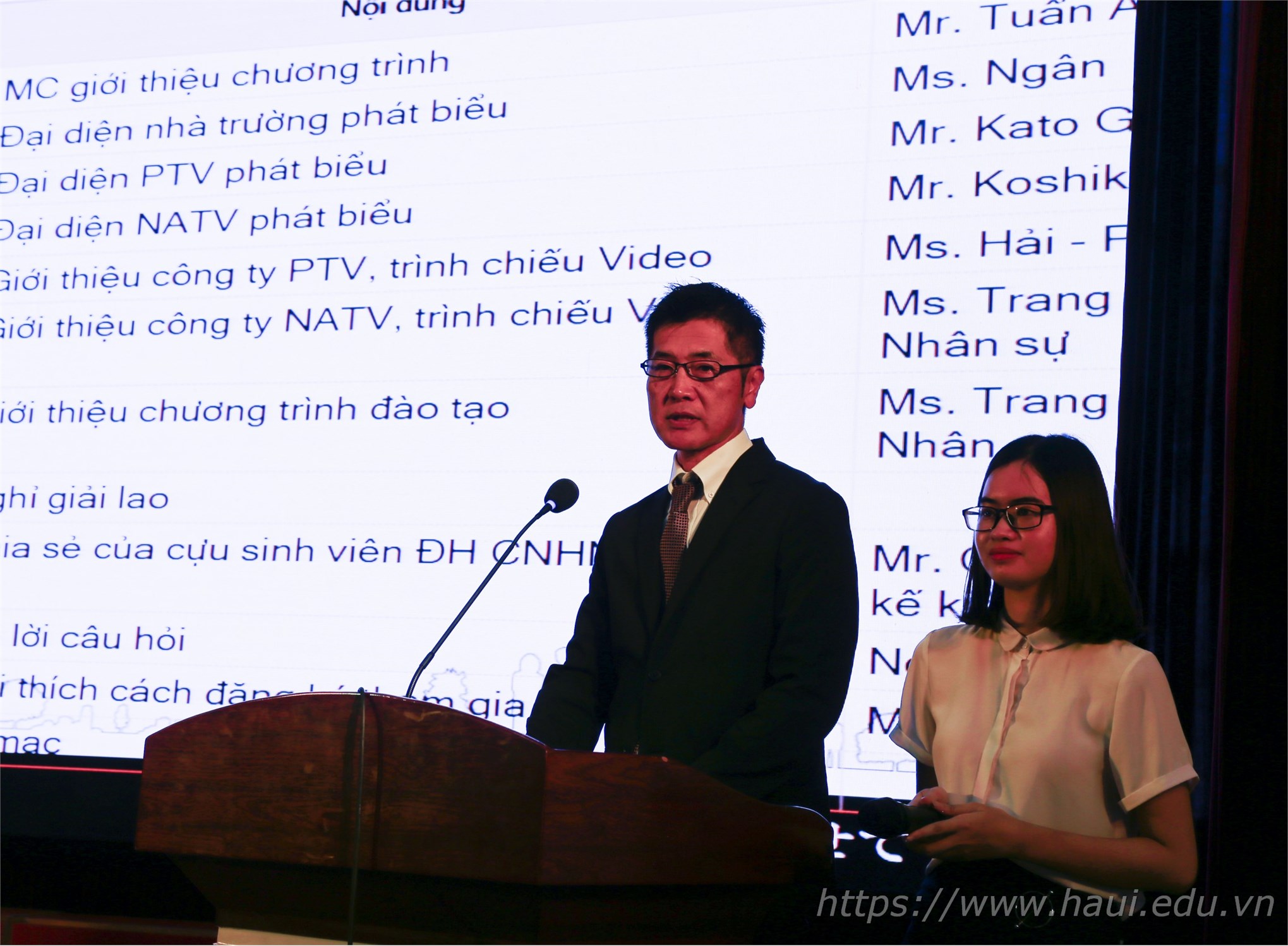Ông Koshikawa Yoshiaki - Phó Tổng giám đốc Công ty NATV hy vọng chương trình hợp tác đào tạo giữa Nhà trường và 02 Công ty ngày càng phát triển, đóng góp chung vào mối quan hệ hợp tác giữa 2 nước Việt Nam và Nhật Bản.