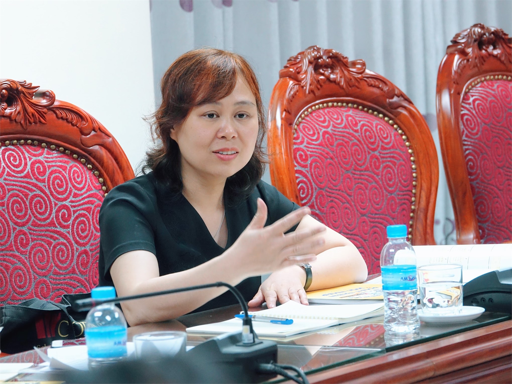 TS. Bùi Thị Ngân - Phó Hiệu trưởng nhà trường phát biểu tại buổi làm việc
