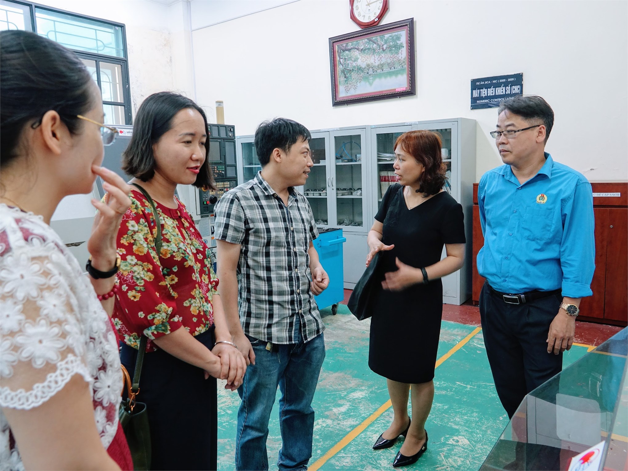 Đoàn công tác cũng dành thời gian tham quan cơ sở vật chất của nhà trường, đồng thời khảo sát tình hình thực hiện nhiệm vụ đại diện, chăm lo và bảo vệ người lao động của các cấp Công đoàn tại Nhà trường, làm căn cứ để Tổng Liên đoàn Lao động Việt Nam biên soạn và hoàn thiện cuốn sách “Công đoàn đại diện cho người lao động, chăm lo và bảo vệ quyền, lợi ích của người lao động”.