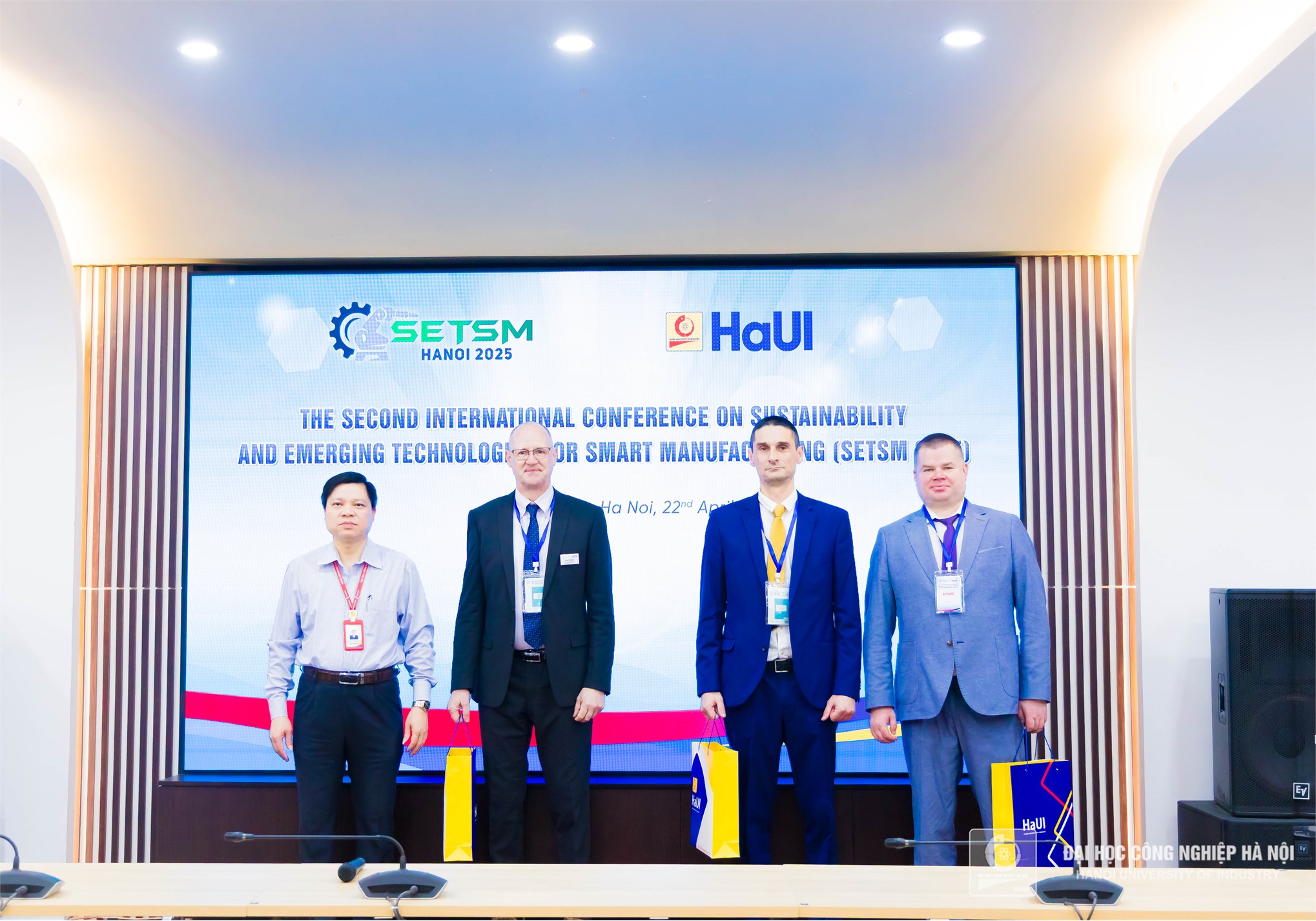 Với sứ mệnh kết nối tri thức toàn cầu và thúc đẩy đổi mới sáng tạo trong sản xuất thông minh, ngày 22/4, Trường Đại học Công nghiệp Hà Nội (HaUI) đã tổ chức Hội thảo Quốc tế lần thứ hai Công nghệ bền vững và nổi bật cho sản xuất thông minh 2025. PGS.TS Lê Hồng Quân - Chủ tịch Hội đồng Nhà trường; PGS.TS Phạm Văn Đông, Phó Hiệu trưởng Nhà trường; TS. Nguyễn Văn Thiện - Phó Hiệu trưởng Nhà trường; PGS.TS Hoàng Tiến Dũng, Hiệu trưởng Trường Cơ khí - Ô tô thuộc HaUI tham dự và chủ trì Hội thảo.