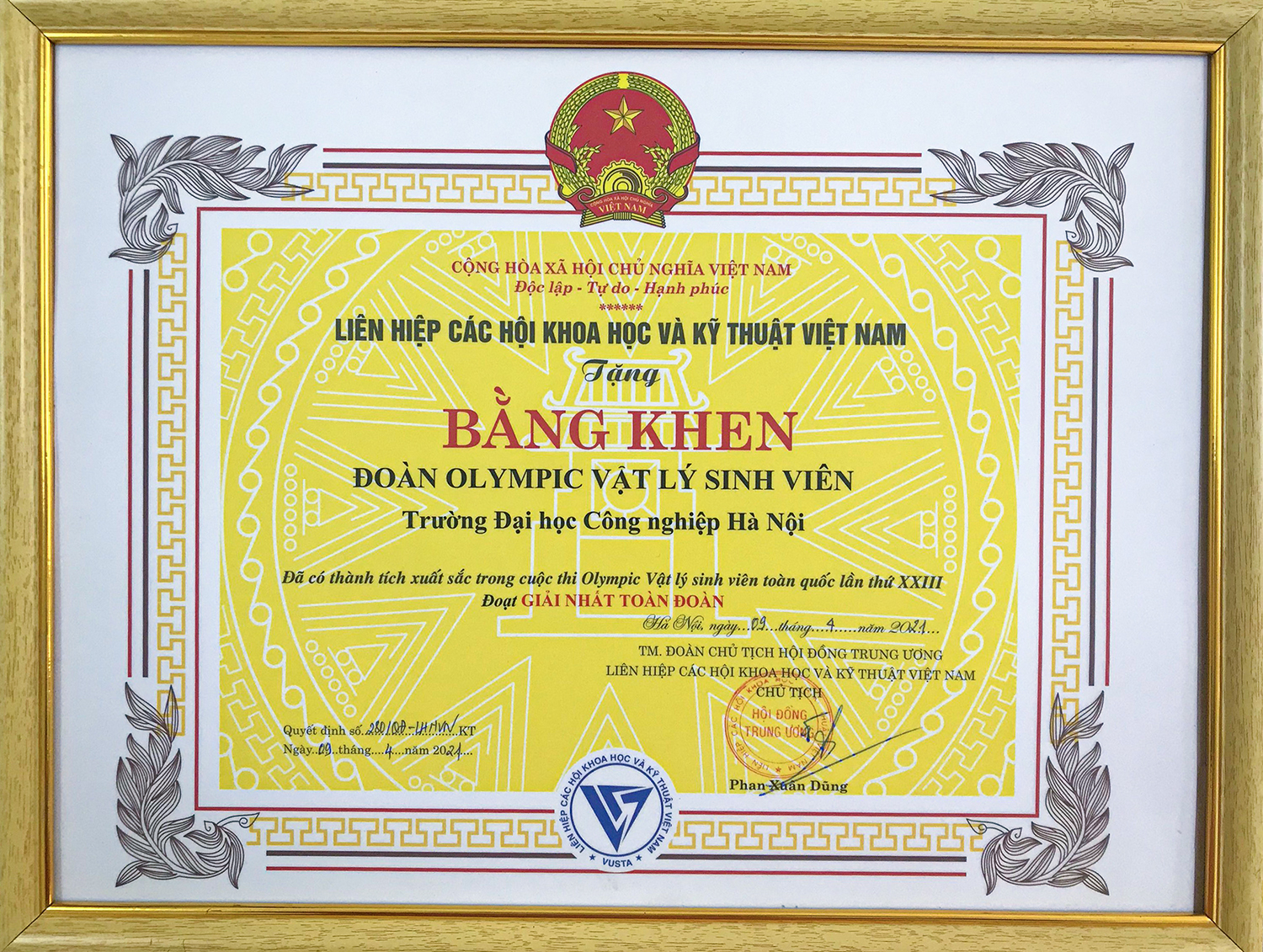 Cuộc thi Olympic Vật lý sinh viên toàn quốc lần thứ 23 năm 2021 vừa diễn ra tại Trường Đại học Sư phạm Kỹ thuật Vĩnh Long từ ngày 14 - 17/4/2021, đội tuyển sinh viên Đại học Công nghiệp Hà Nội xuất sắc đạt giải Nhất toàn đoàn với 07 giải.