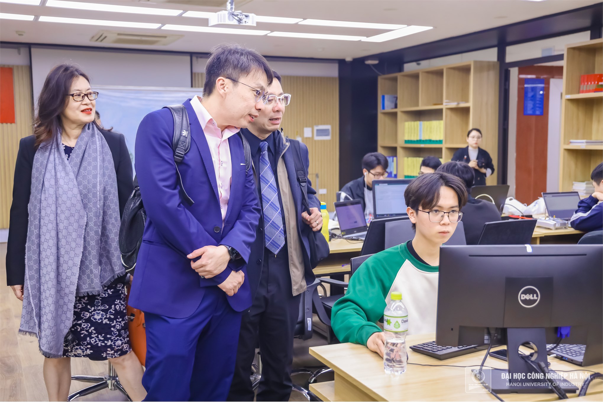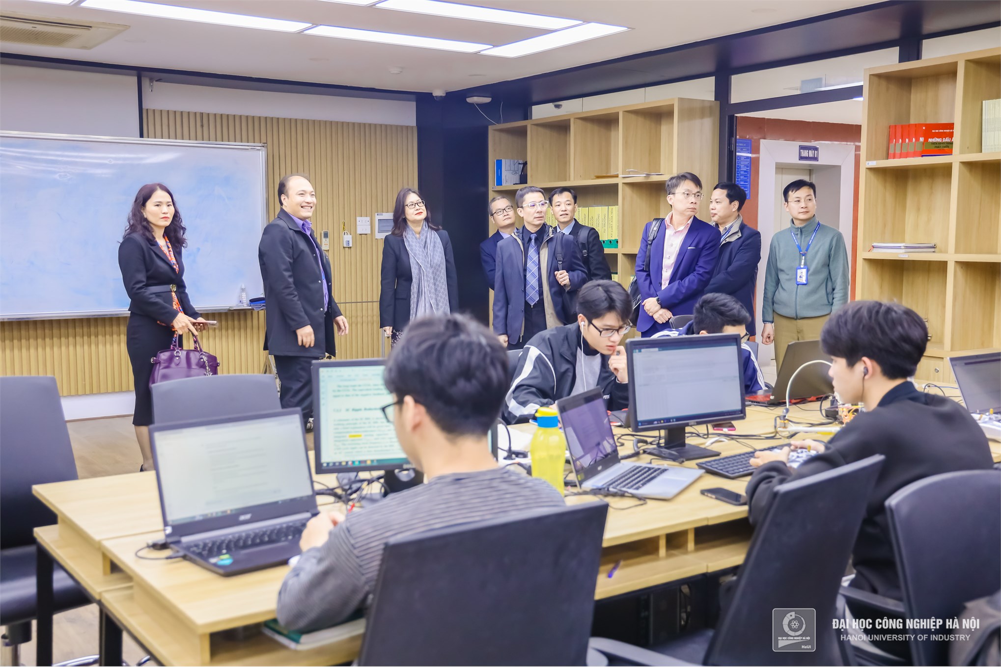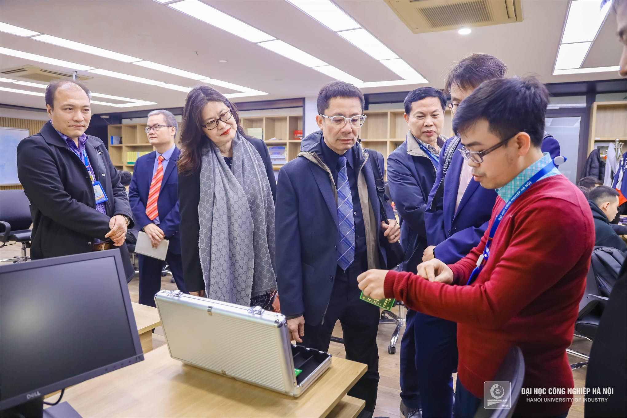 Trong khuôn khổ của buổi làm việc, Đoàn công tác đã đi tham quan Khoa Điện tử và Nhà máy thông minh của Nhà trường.