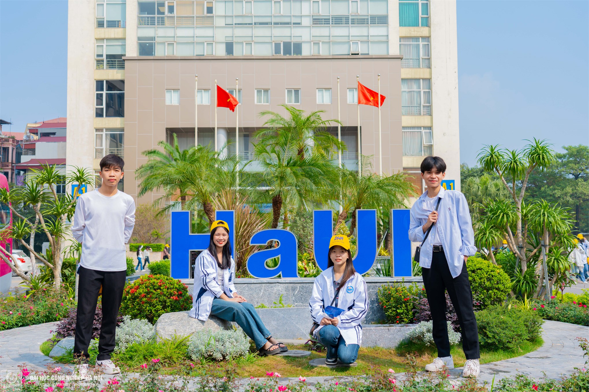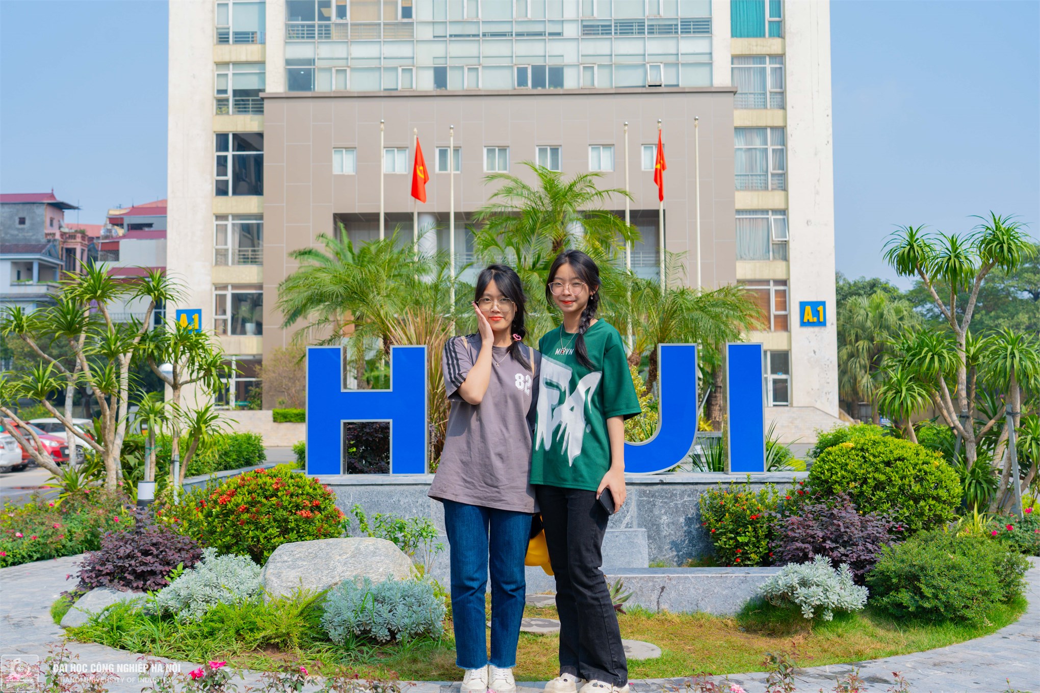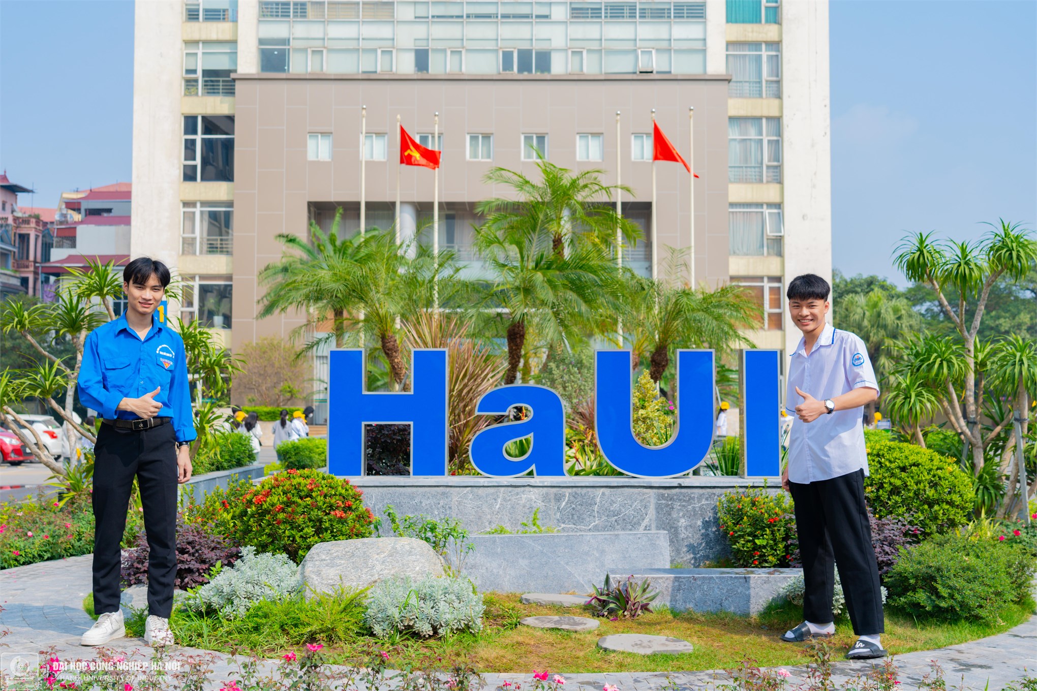 Hai anh em Nguyễn Tuấn Anh ( sinh viên năm 2, Khoa CNTT) và em trai Nguyễn Tuấn Thành (12A3,THPT Mê Linh) vui vẻ cùng nhau lưu lại kỷ niệm đẹp với HaUI.