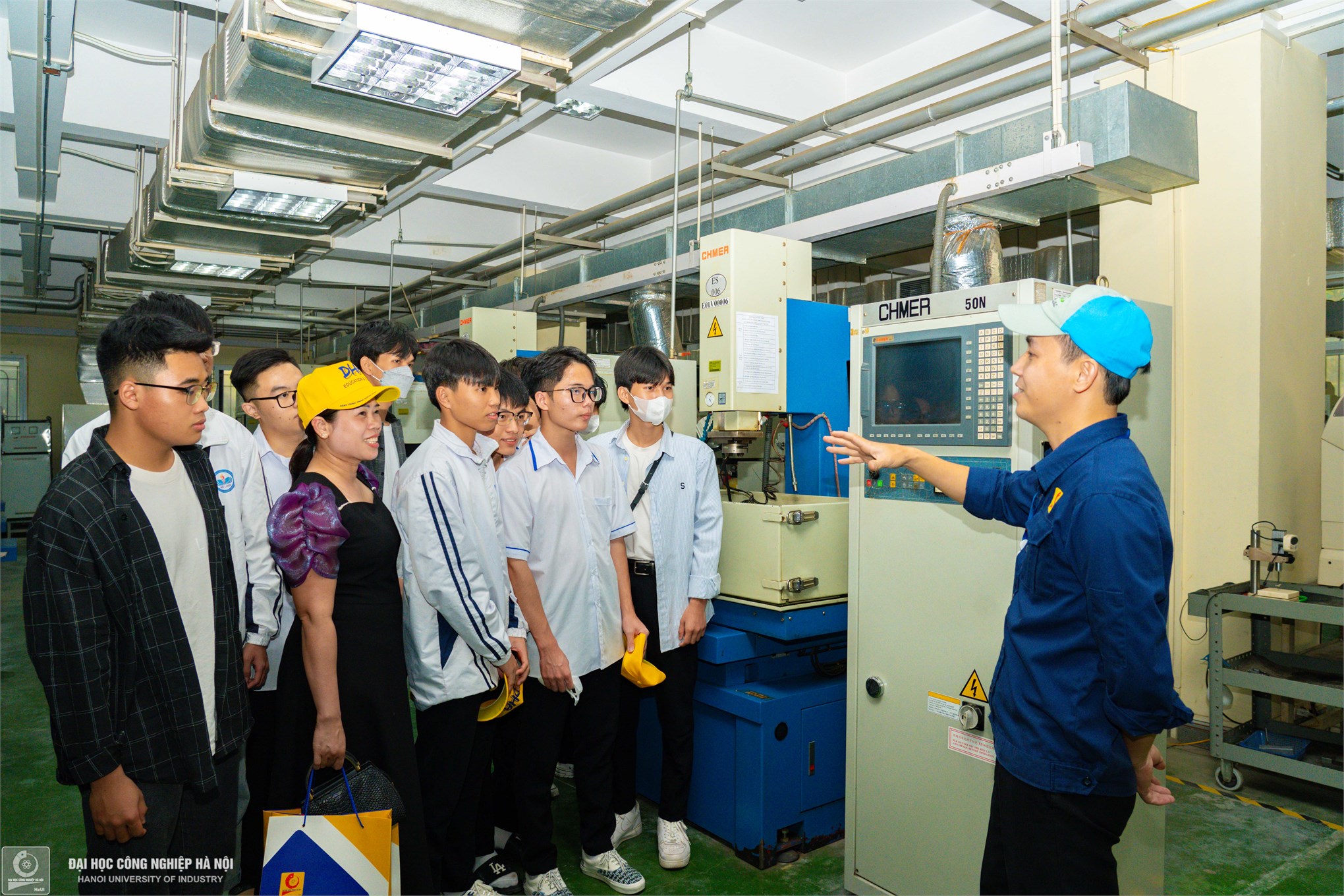 Trong buổi tham quan, các thầy cô giáo, phụ huynh cũng như các em học sinh được tìm hiểu Đại học Công nghiệp Hà Nội, mô hình và chương trình đào tạo, dự kiến phương thức và chỉ tiêu tuyển sinh năm học 2024 - 2025..., tham quan khuôn viên, khu giảng đường, phòng thí nghiệm, xưởng thực hành, giúp các em tìm hiểu sâu hơn về môi trường đại học trong tương lai.