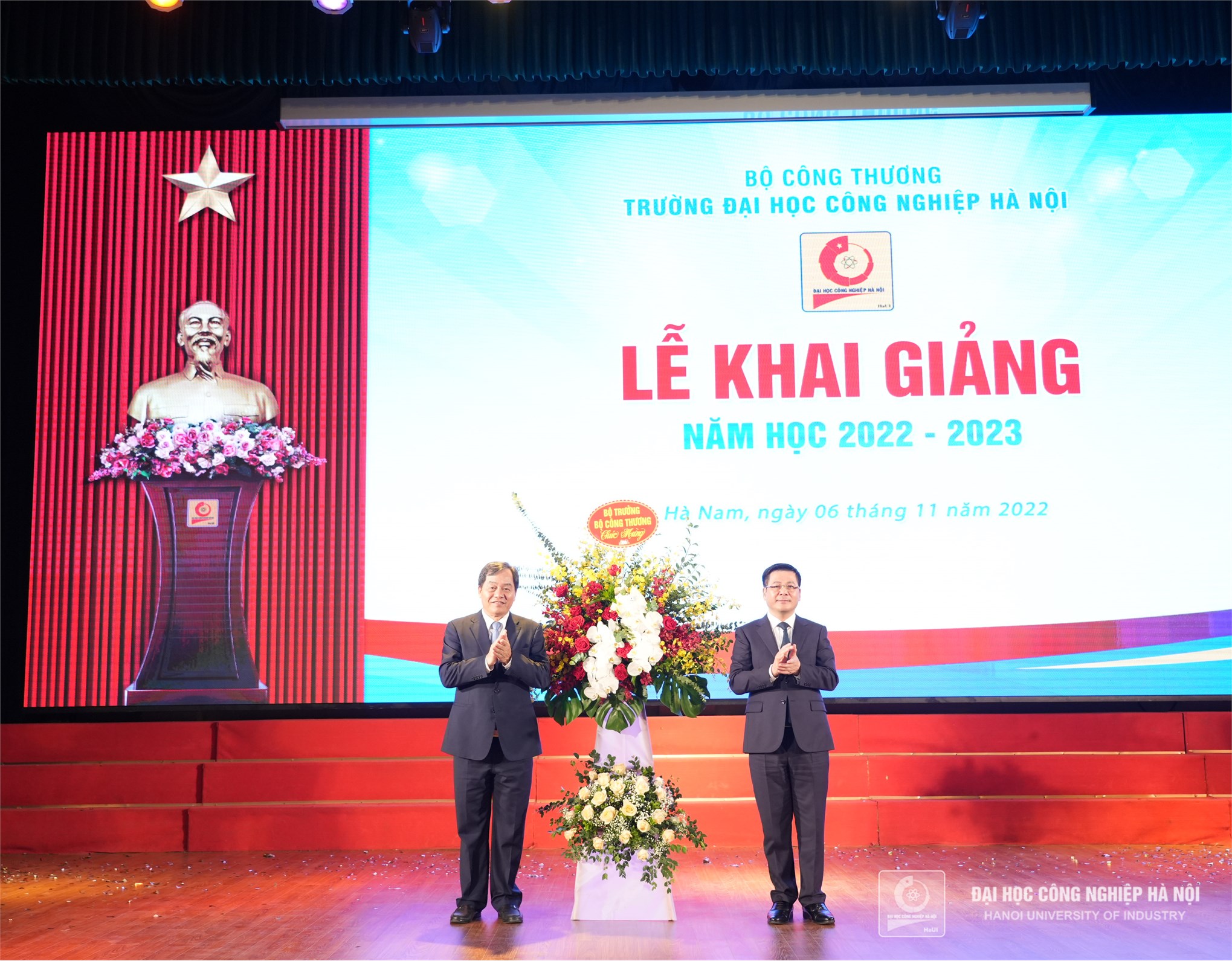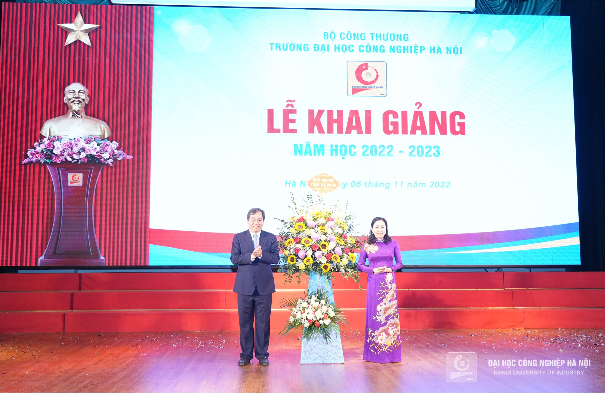 Nhân dịp năm học mới, thay mặt tập thể Lãnh đạo Bộ, cán bộ, công chức, viên chức, người lao động ngành Công Thương, Bộ trưởng Nguyễn Hồng Diên tặng hoa chúc mừng Nhà trường