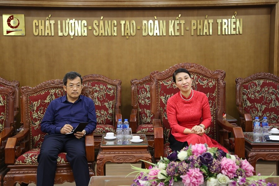 TS. Bùi Thị Ngân – Phó Hiệu trưởng Nhà trường và ThS. Nguyễn Thanh Tùng – Giám đốc TT Đào tạo quốc tế tại buổi làm việc