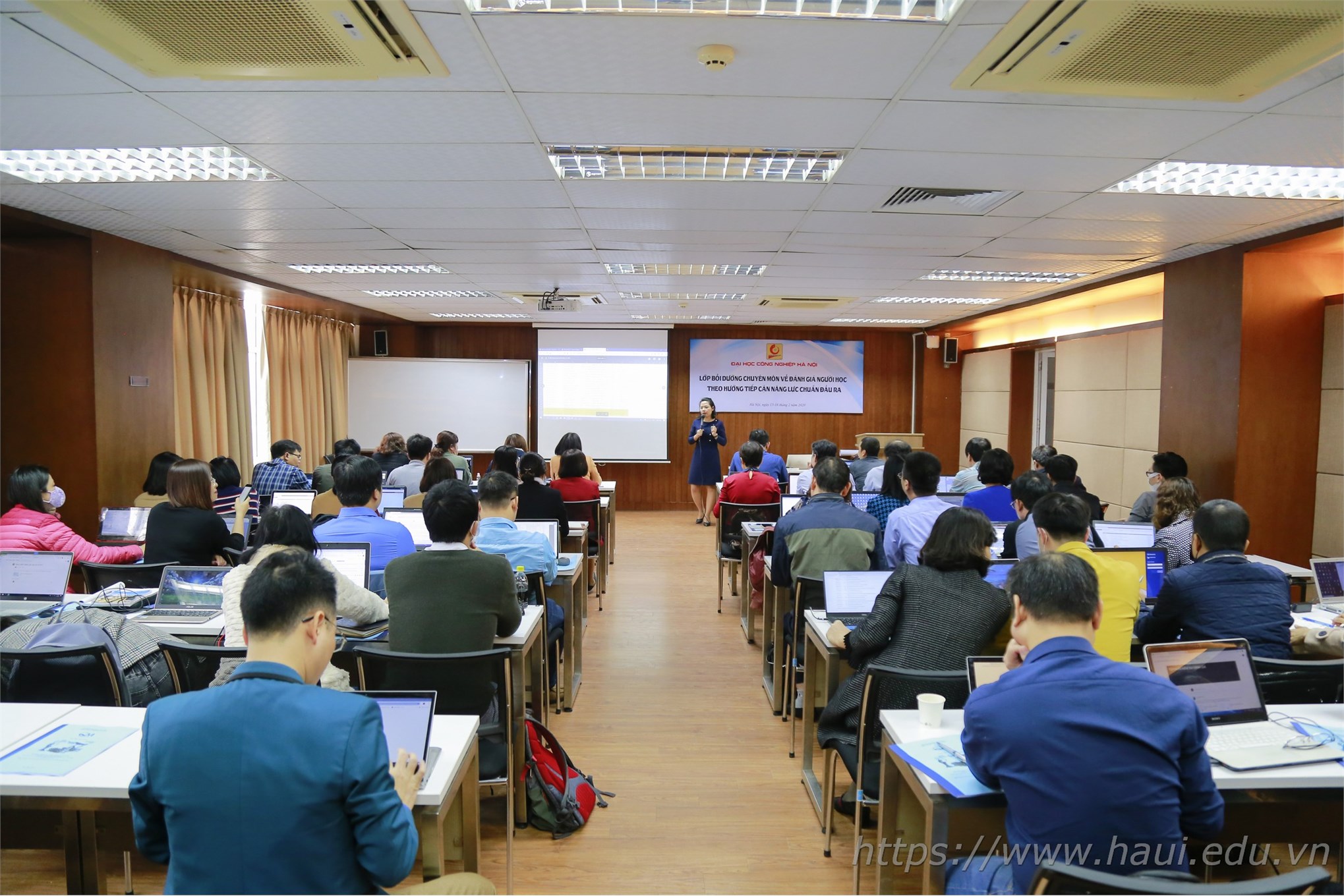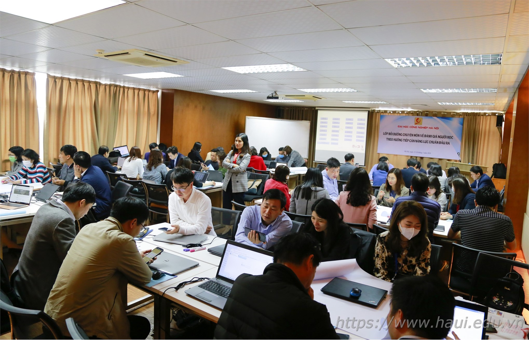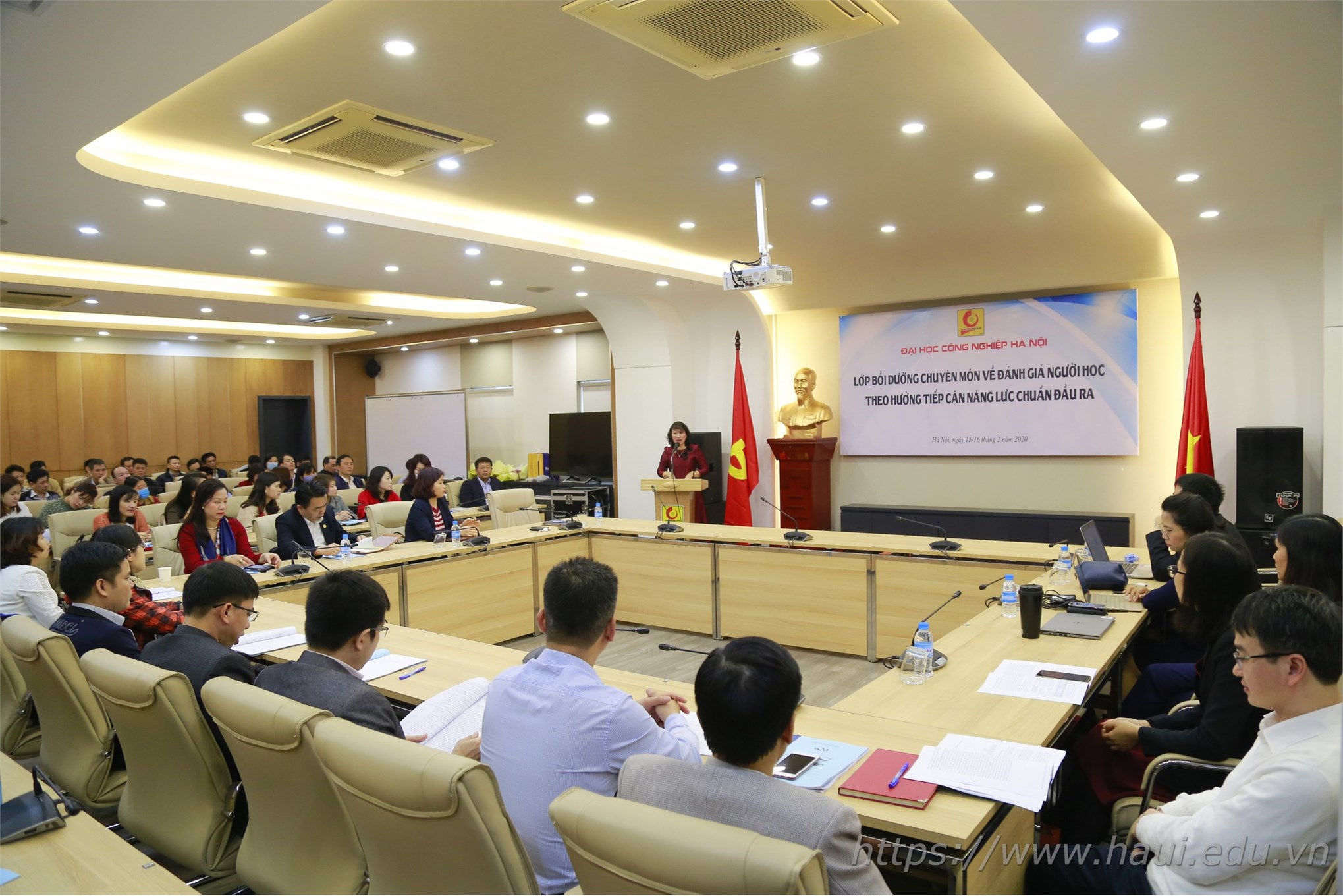 Nhằm nâng cao năng lực về công tác khảo thí cho đội ngũ cán bộ, giảng viên, trong hai ngày 15&16/02/2020, Trường Đại học Công nghiệp Hà Nội tổ chức lớp bồi dưỡng chuyên môn về đánh giá người học theo hướng tiếp cận năng lực chuẩn đầu ra cho hơn 160 cán bộ, giảng viên của trường.