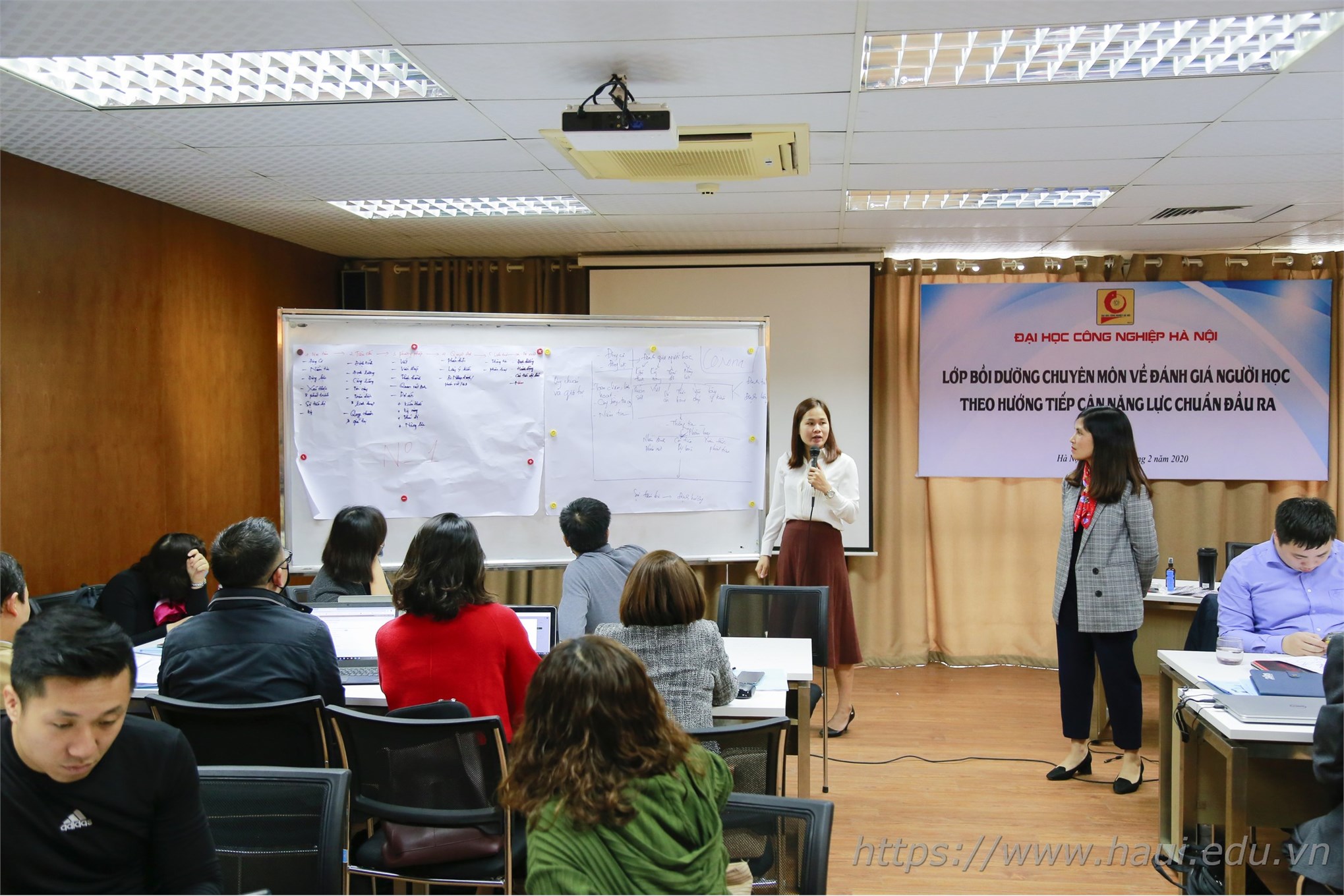 Trong 02 ngày tập huấn, các học viên được nghe các chuyên gia có nhiều kinh nghiệm trong lĩnh vực khảo thí đến từ Trường Đại học Giáo dục, Đại học Quốc gia Hà Nội giảng dạy, hướng dẫn chuyên môn về đánh giá ngươi học theo hướng tiếp cận năng lực chuẩn đầu ra.