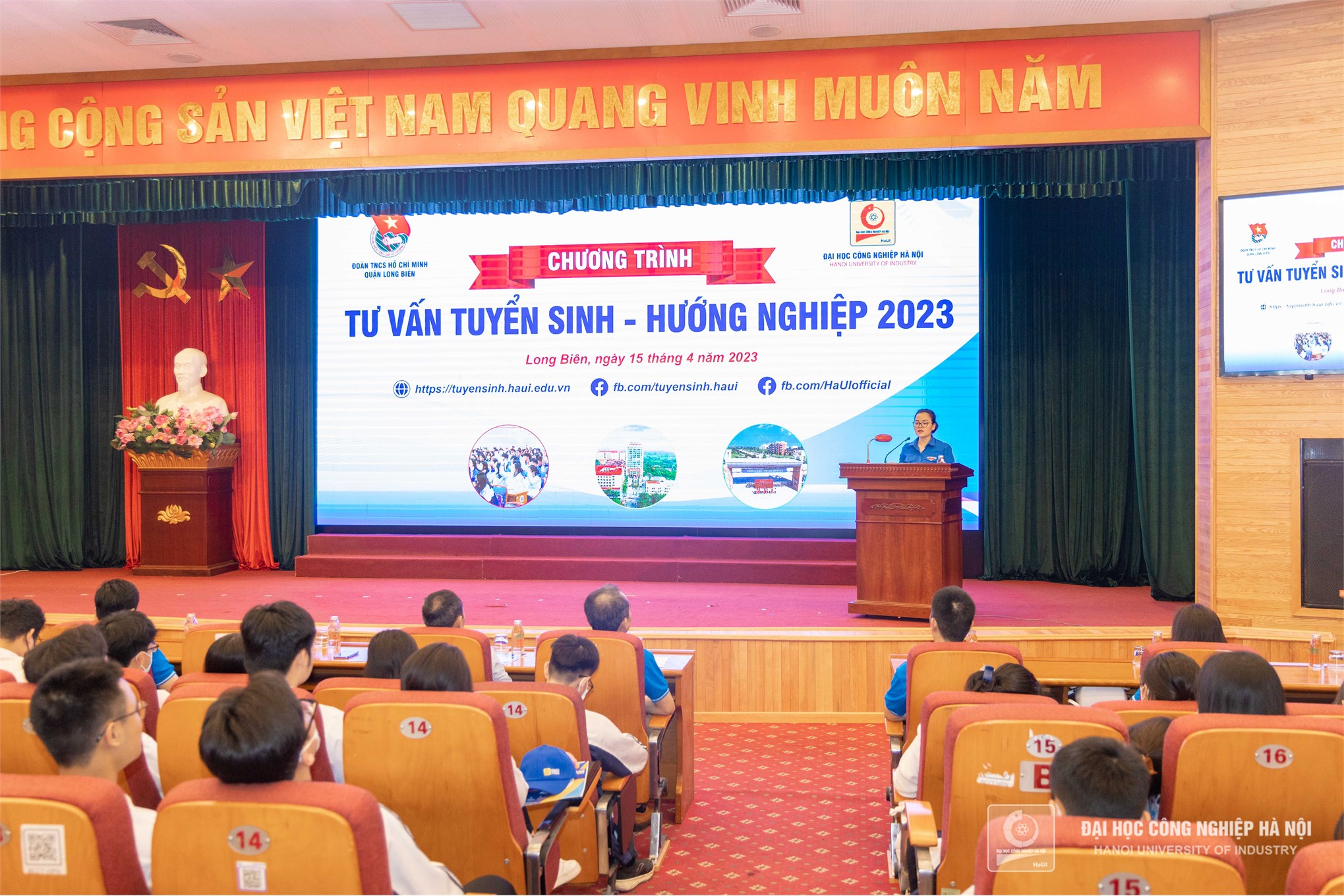 Ngày 15/4, Trường Đại học Công nghiệp Hà Nội phối hợp cùng Quận đoàn Long Biên tổ chức Chương trình tư vấn tuyển sinh, hướng nghiệp năm 2023. Sự kiện thu hút hơn 500 học sinh THPT trên địa bàn quận Long biên, Hà Nội.